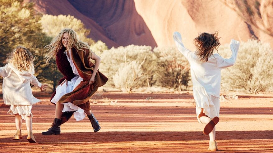 Изысканная Кидман предстала в образе игривой женщины-ковбоя, которая играется со своими двумя дочками - 7-летней Сандей и 4-летней Фейт, на поляне.