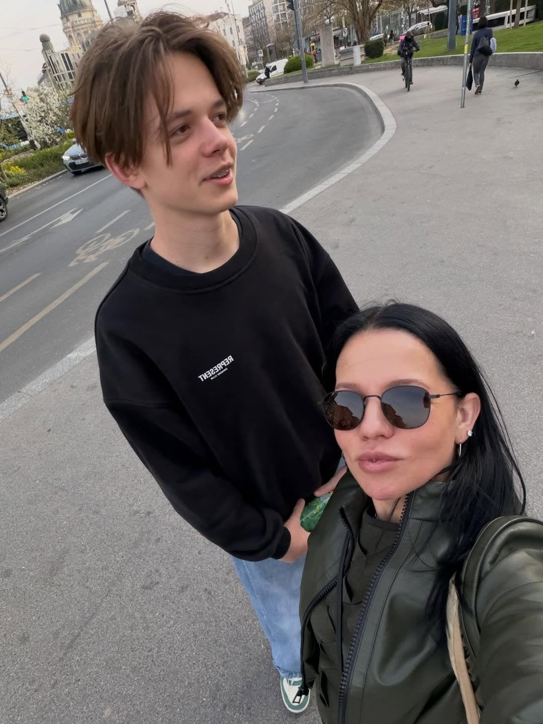 В своем Instagram продюсер уже и поделилась фото с их прогулки. На снимке Ирина Горовая и Андрей позируют на тротуаре. Пока продюсер делает селфи, ее сын загадочно всматривается вдаль.