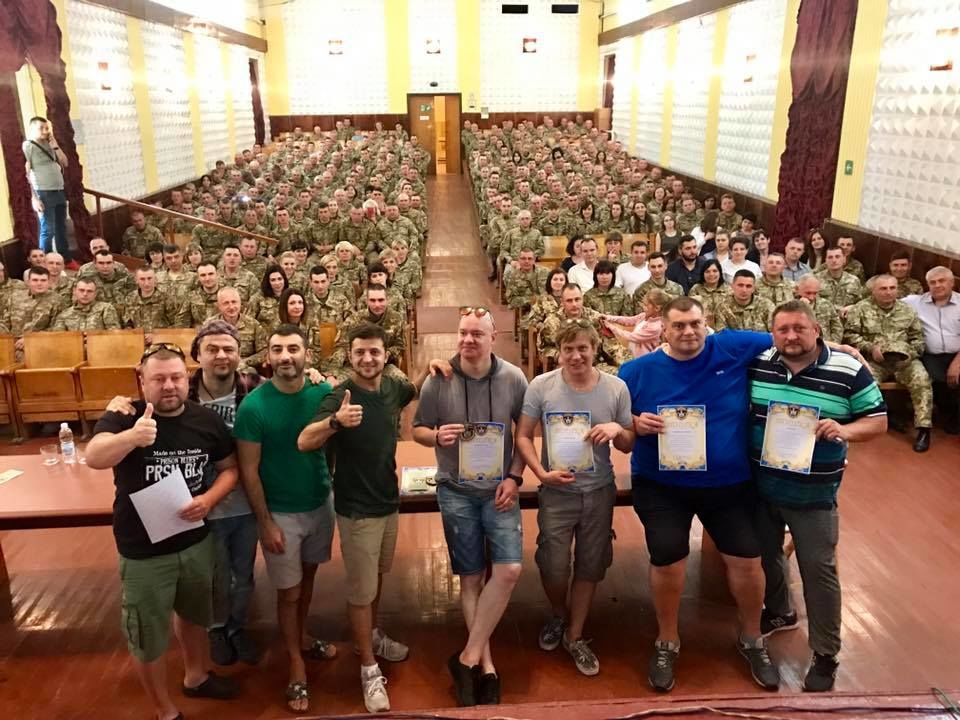 На днях актерский состав студии "Квартал 95" вернулся из двухнедельного гастрольного тура по городам Украины. Всего, напомним, ребята выступили с новой программой в девяти городах, которую увидели около 30 тысяч зрителей. Помимо концертов, коллектив студии "Квартал 95" практически каждый день заезжал в воинские части, где ребята встречались с защитниками нашей Родины и их семьями.