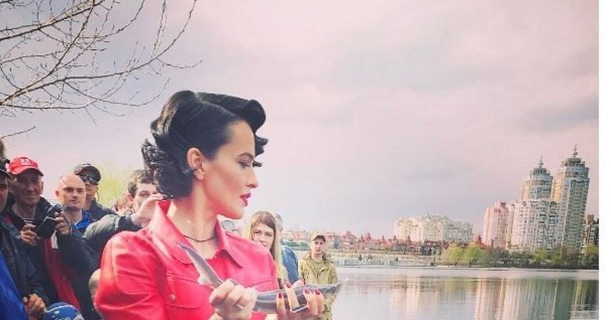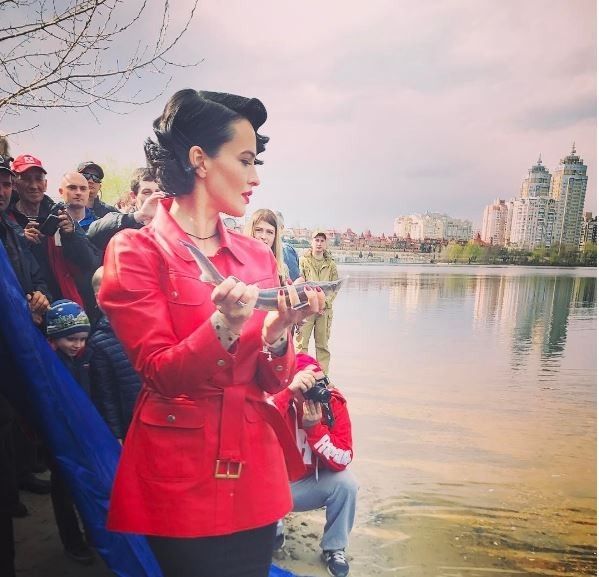 "На страже хороших дел. Сегодня мы выпустили в Днепр 3500 тонн рыбы. Из них более тысячи особей стерляди, которая занесена в Красную Книгу!"- похвасталась исполнительница.