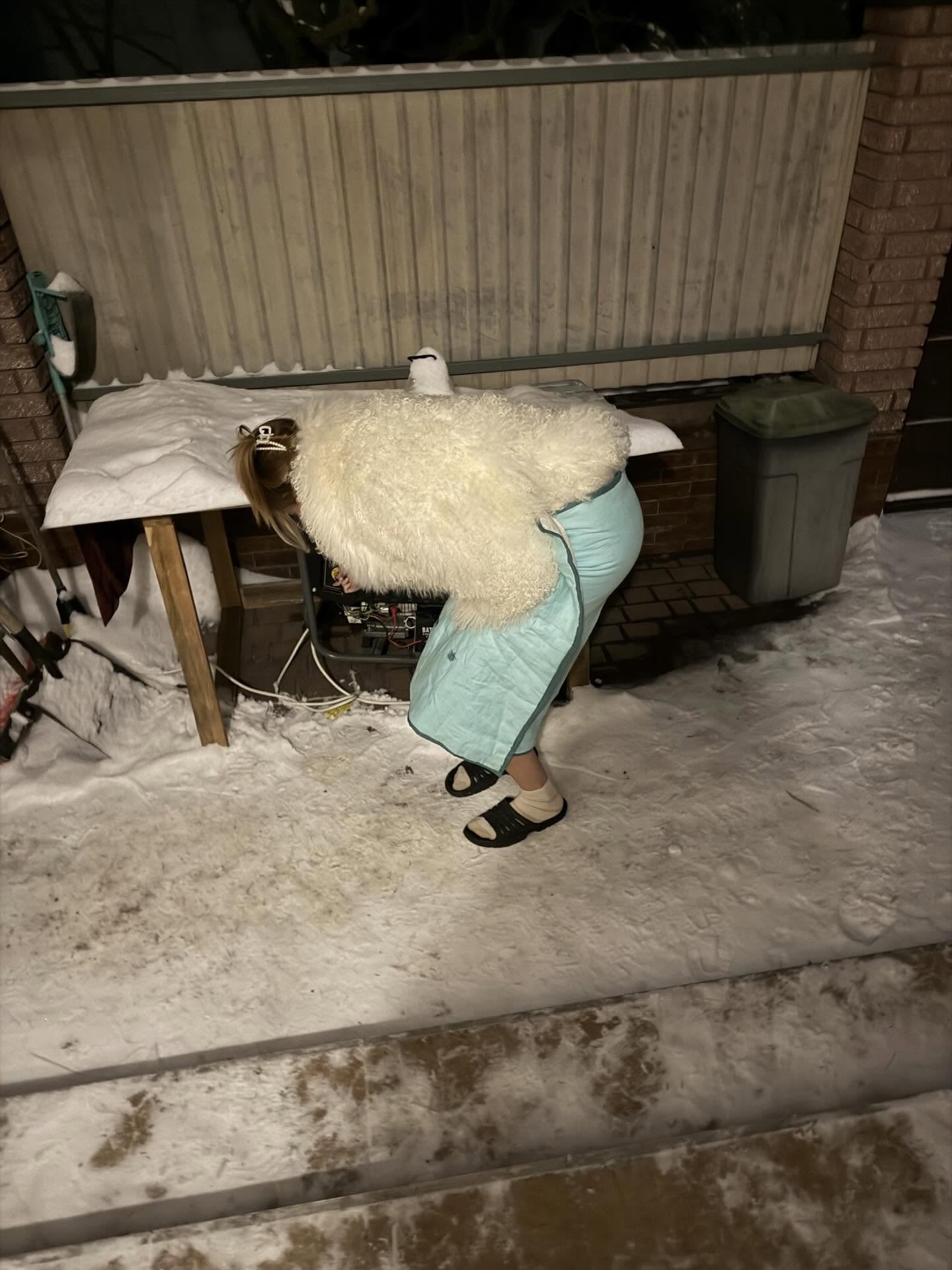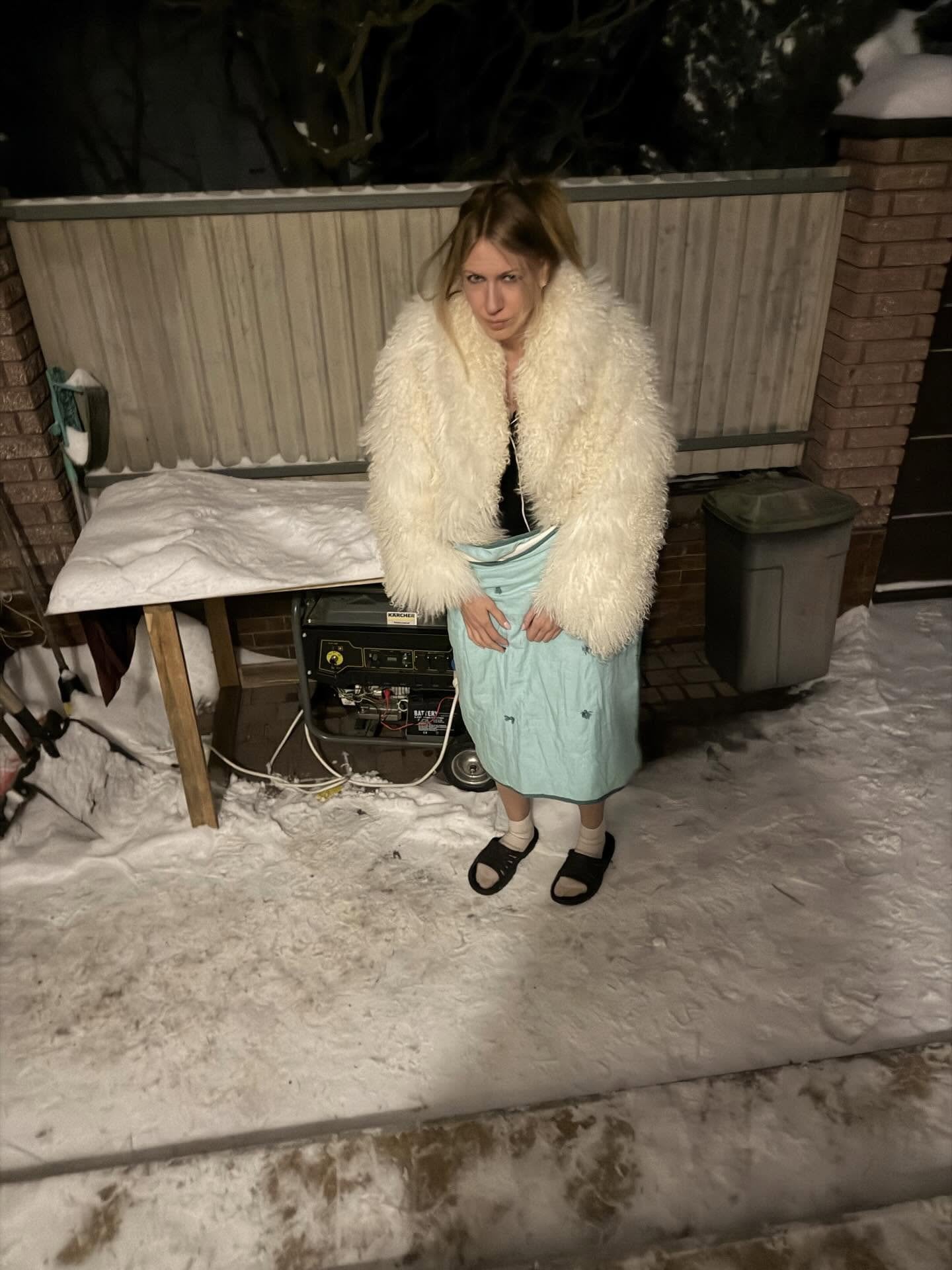 Леся Никитюк в шлепках на ногах и в шубе показалась ночью возле генератора и насмешила фанов