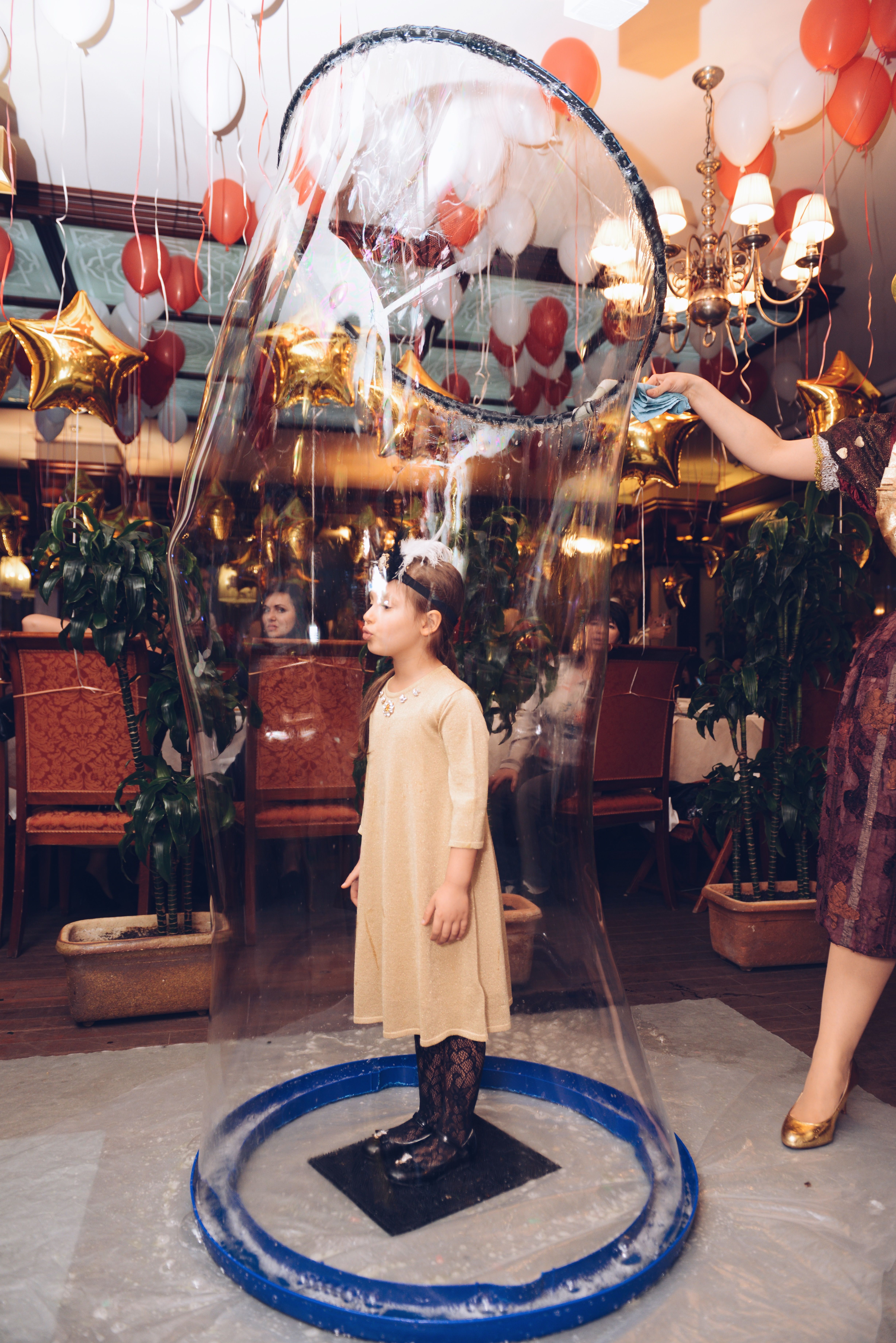 Яркой вечеринкой в стиле Гэтсби отпраздновали день рождения дочки Светланы Лободы - Евангелины. Виновница торжества получила в подарок много интерактивных игрушек, а также выступление цирковых артистов и шоу мыльных пузырей.