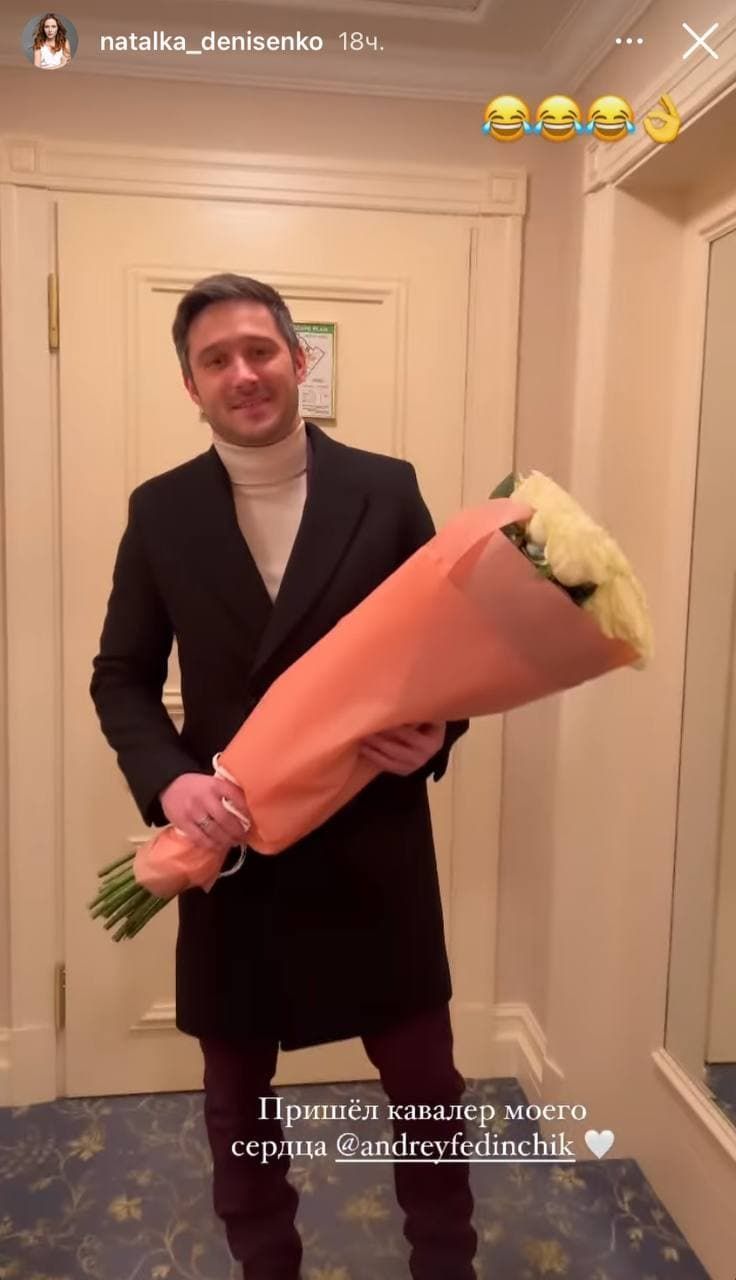 Ну и конечно же Наталку поздравлял ее любимый – Андрей Фединчик, который подарил своей жене огромный букет роз.