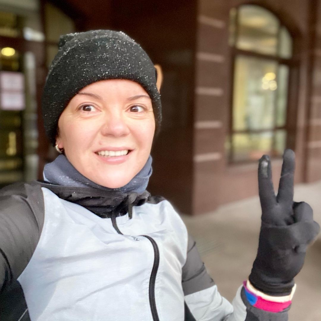 Так, ведущая "ТСН" решила добираться на утренний эфир не машиной, а своими ногами. Несмотря на холод в -8 градусов, знаменитость с легкостью преодолела восемь километров. У офиса Маричка сделала селфи, на котором встала в спортивном костюме, без макияжа и с красными щечками.