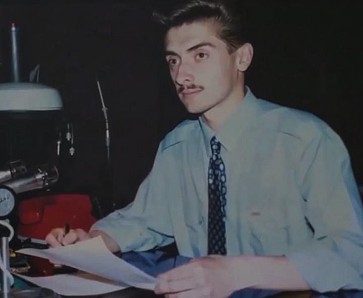 Снимок был сделан именно в момент рабочего процесса на радио. На фото молодой Алексей Суханов в рубашке с галстуком как раз вычитывал текст. К слову, кадр был сделан 30 лет назад, поэтому ориентировочно ведущему там было всего 20 лет.