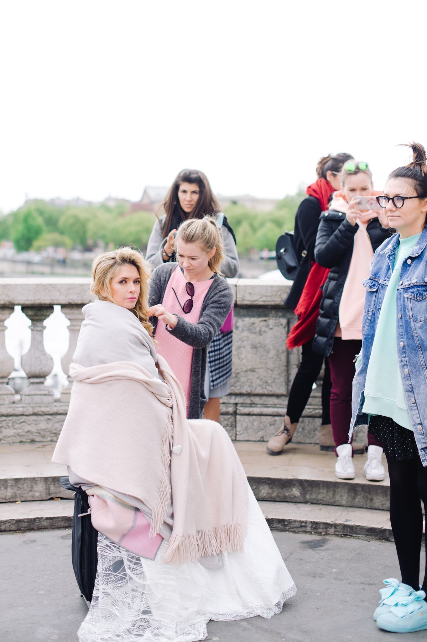 "Мы меняли образы прямо на улице, рано утром в +5, но город дарил нам за это идеально пустынные локации. У нас были самые красивые воздушные шары, самые волшебные рассветы и один фантастический закат: в последний момент один из отелей пустил нас на одну из лучших крыш Парижа", - рассказывает PR-директор сервиса Настя Иваничева.