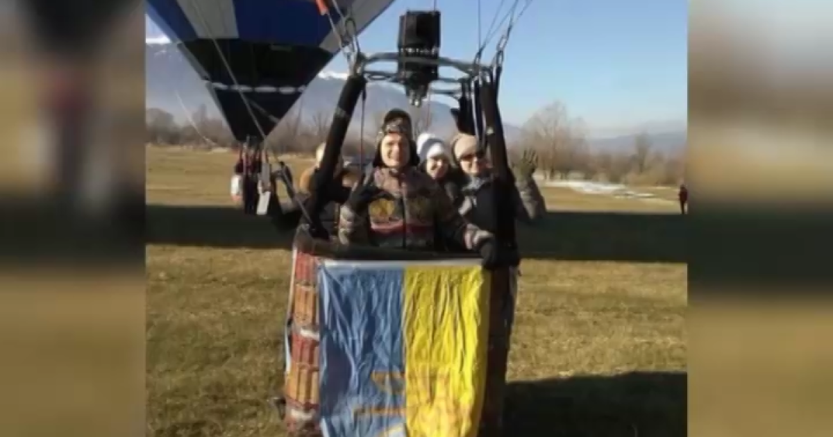 Украинский певец Олег Скрипка, который недавно впервые показал своих сыновей, с желто-голубым флагом покорил небо Болгарии.