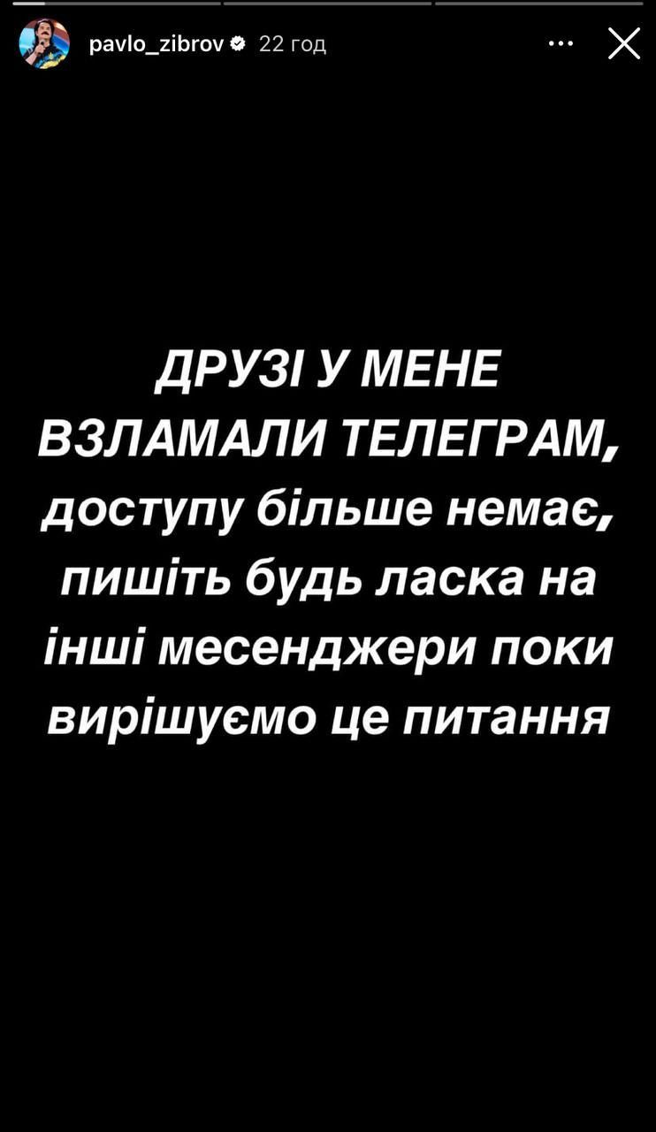 Об этом артист сообщил в своем Instagram. Исполнитель говорит, что аферисты взломали его аккаунт в Telegram. Так что сейчас у певца нет к нему доступа.