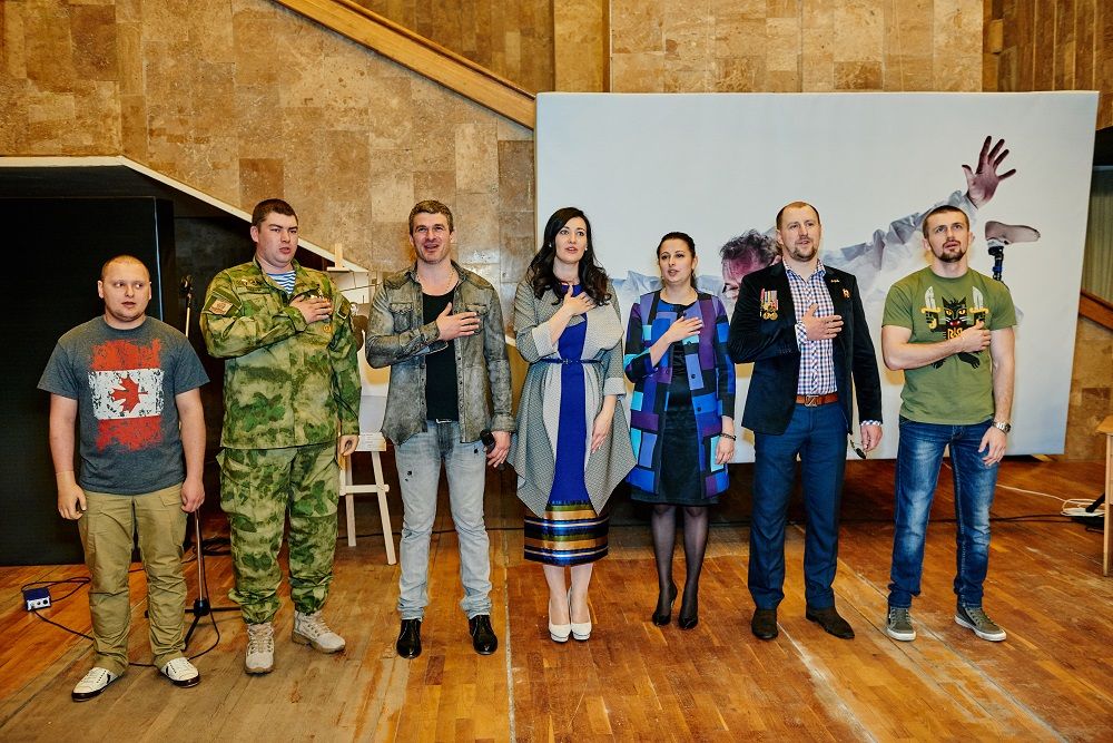 На презентации присутствовали герои АТО, "победители" Юрий Весельский, Влад Кузнецов, Владимир Довгорук и Михаил Ващенко с женой и маленькой дочкой. Сейчас Вадим Довгорук проходит протезирование в харьковском госпитале.