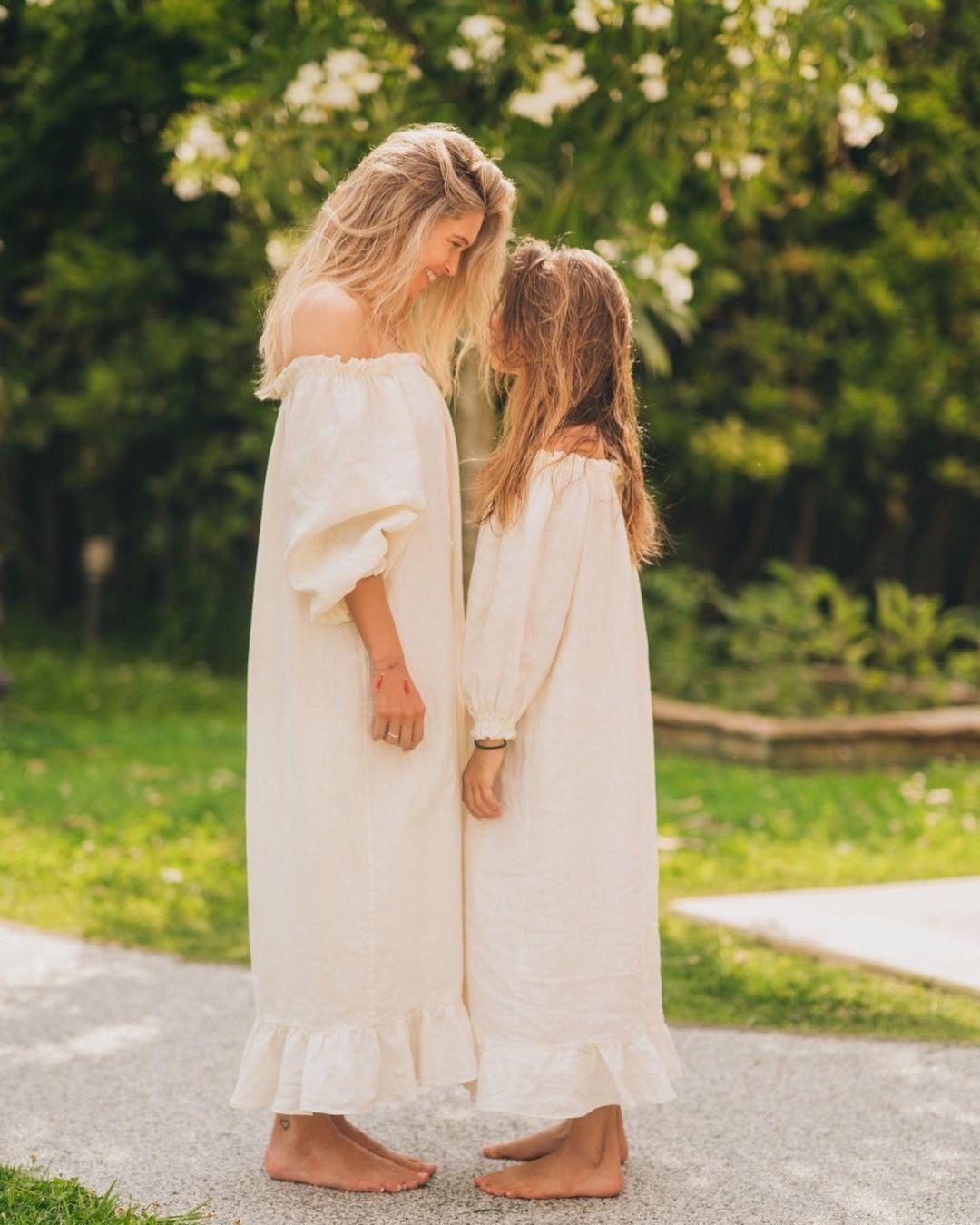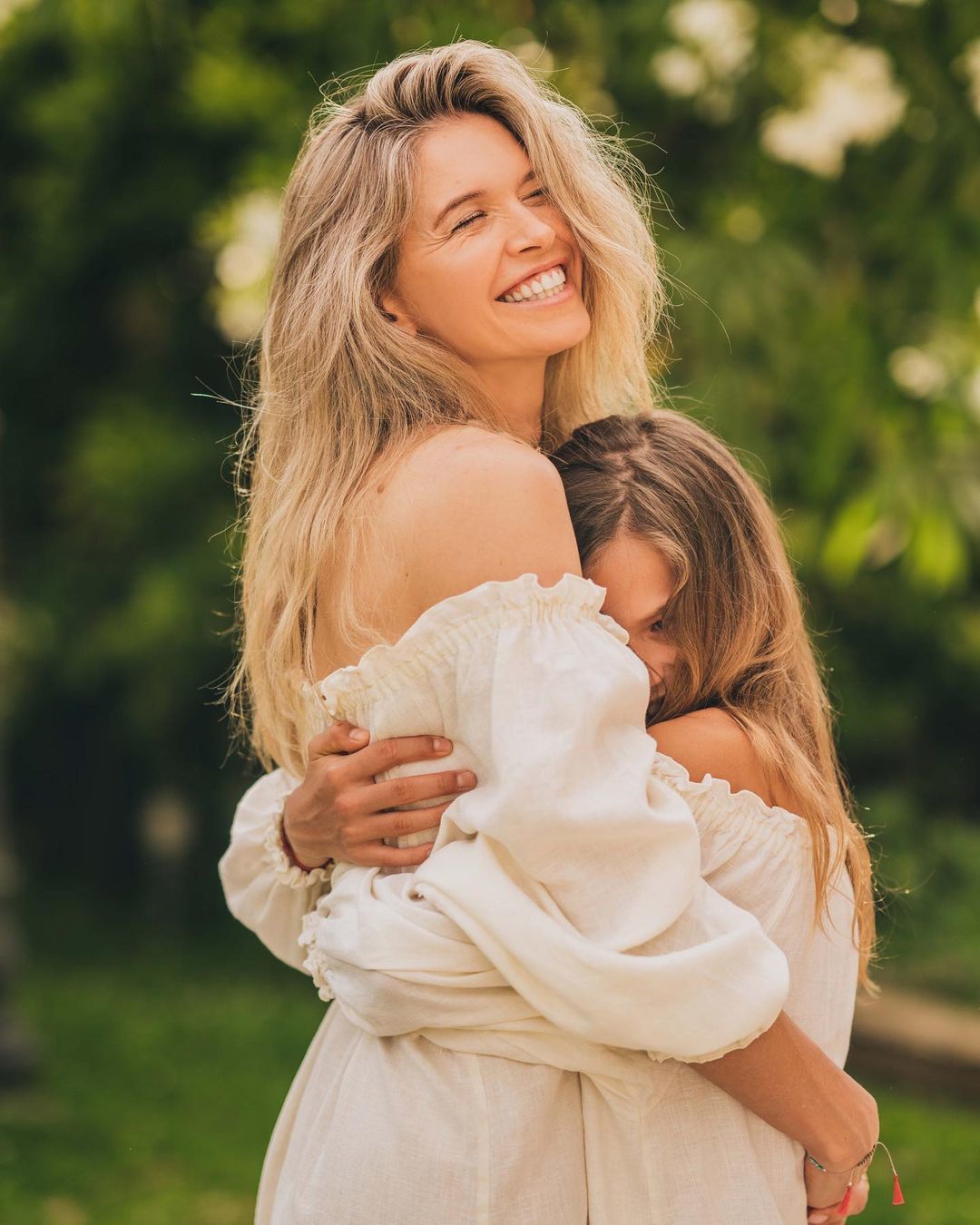На фотографиях звездная мама и дочь позировали с распущенными волосами, одетые в одинаковые белые платья. Девушки демонстрировали нежные чувства.