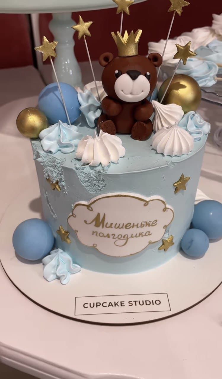 Также на праздновании не обошлось без кэнди-бара со сладостями. Кроме разнообразных десертов ,для виновника праздника заказали красивый тортик.