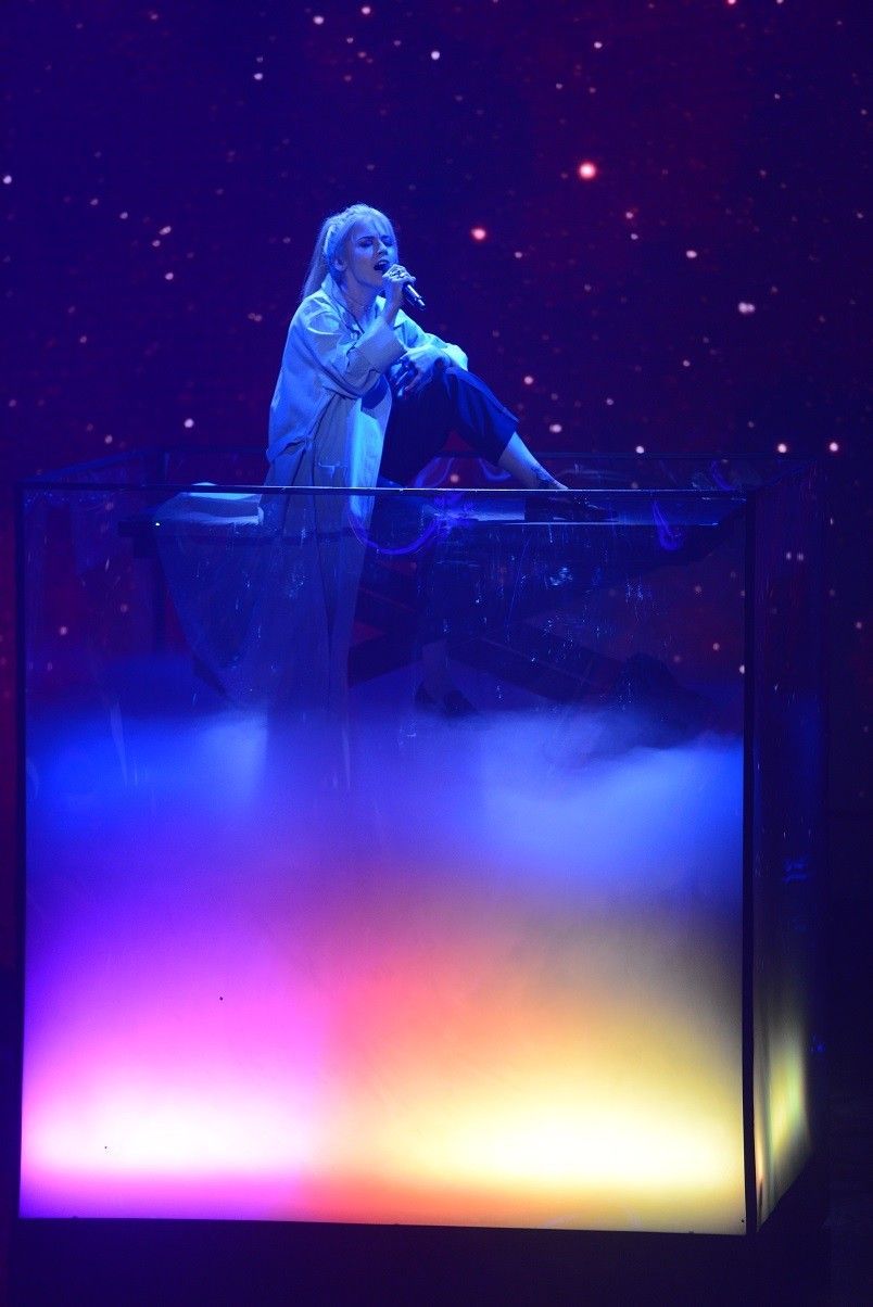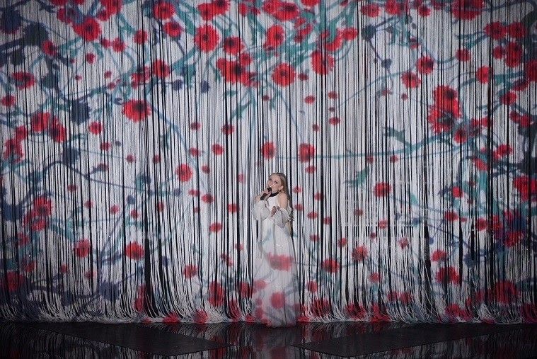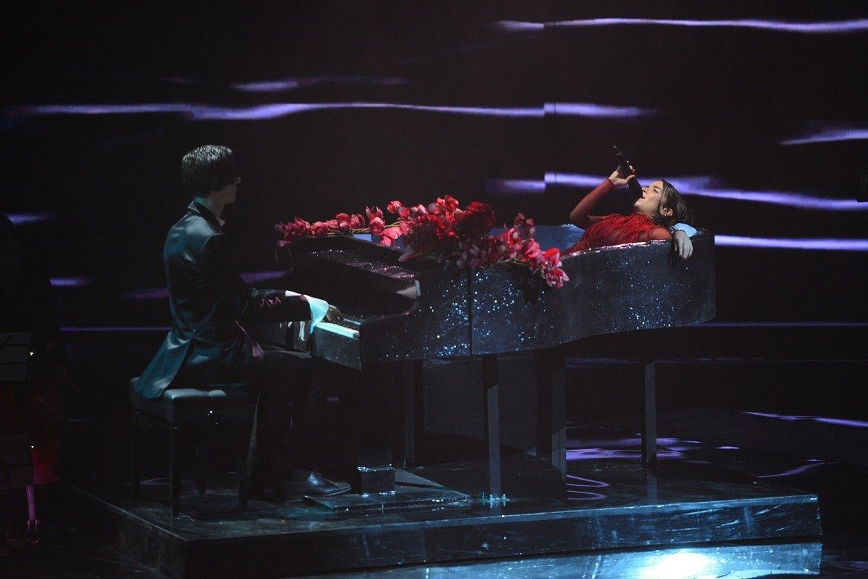 Одним из самых ярких номеров вечера стало выступление Нины Цнобиладзе. Девушка чувственно исполнила песню "Creep" группы "Radiohead", лежа в наполненном водой и украшенной яркими красными цветами рояле.