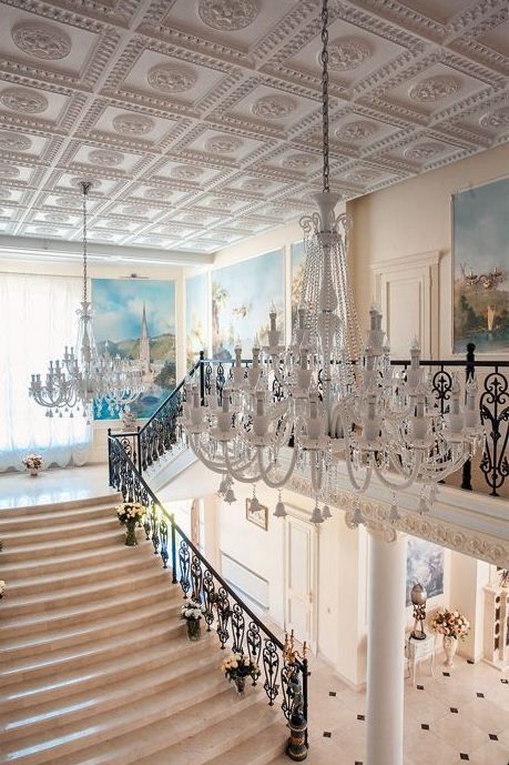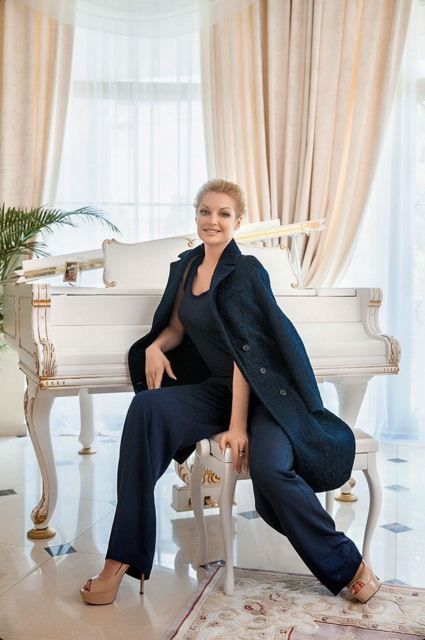 На фоне роскошного дизайна и мраморных лестниц Анастасия позирует в стильных костюмах, длинных платьях. Образ балерины дополняет легкий мейк-ап и аккурантая прическа.