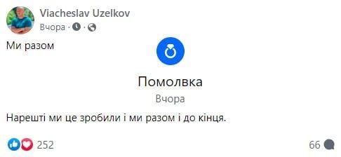 Отметим, что это уже не первый раз, когда Вячеслав Узелков сообщает о своей женитьбе. Так, в начале февраля 2022 года на вопросы фанатов, как у него дела, Узелков ответил, что женится. Но, вероятно, тогда воплотить желаемое в жизнь влюбленным помешало полномасштабное вторжение российских оккупантов в Украину. В начале ноября 2021 боксер делился, что у него новые отношения. Тогда о любимой Узелков говорил неохотно, только рассказал, что ей "чуть больше 30" и они были давно знакомы.