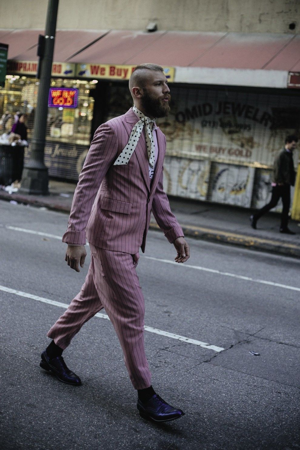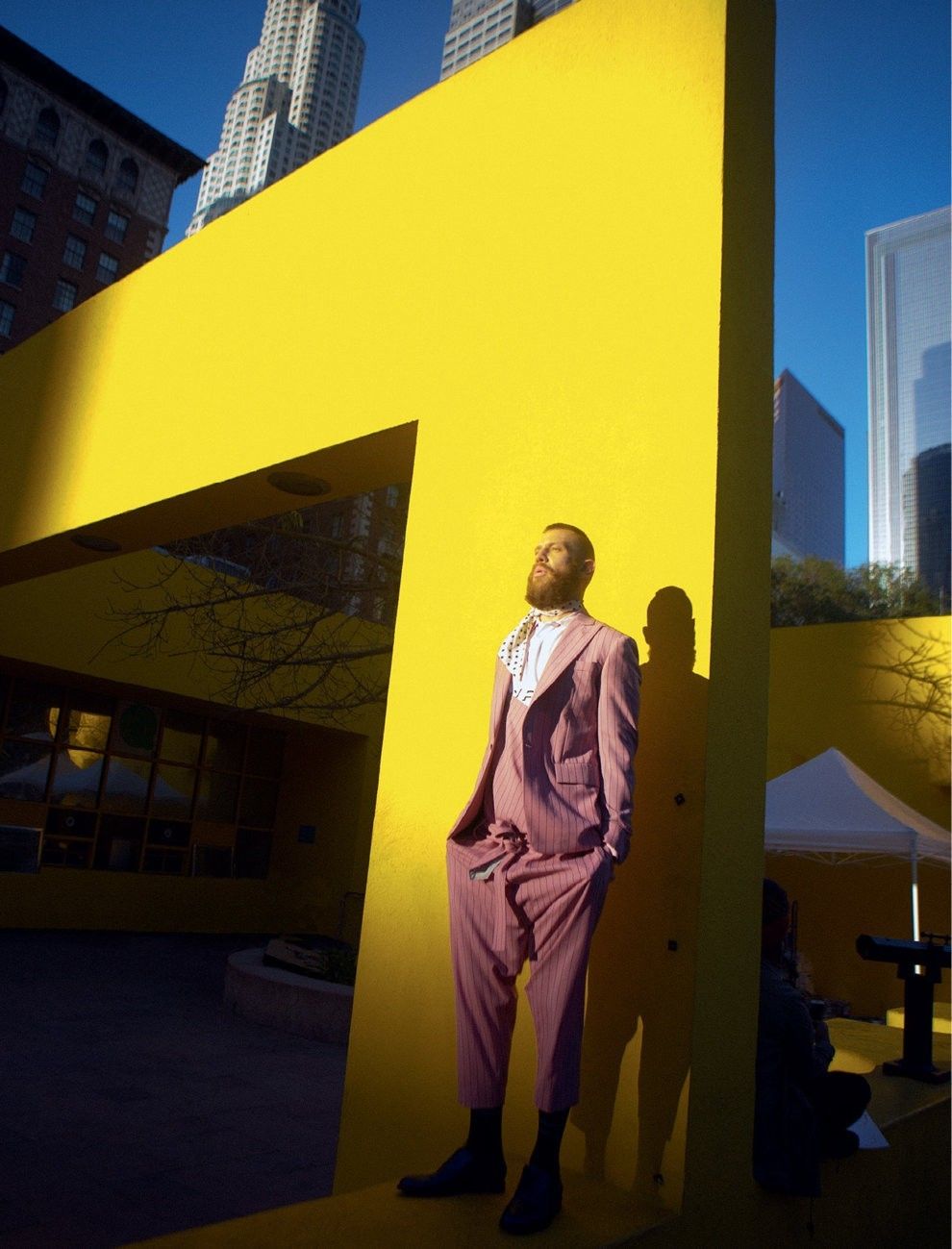 Забавный Дорн в розовом костюме и новом имидже снялся для глянца