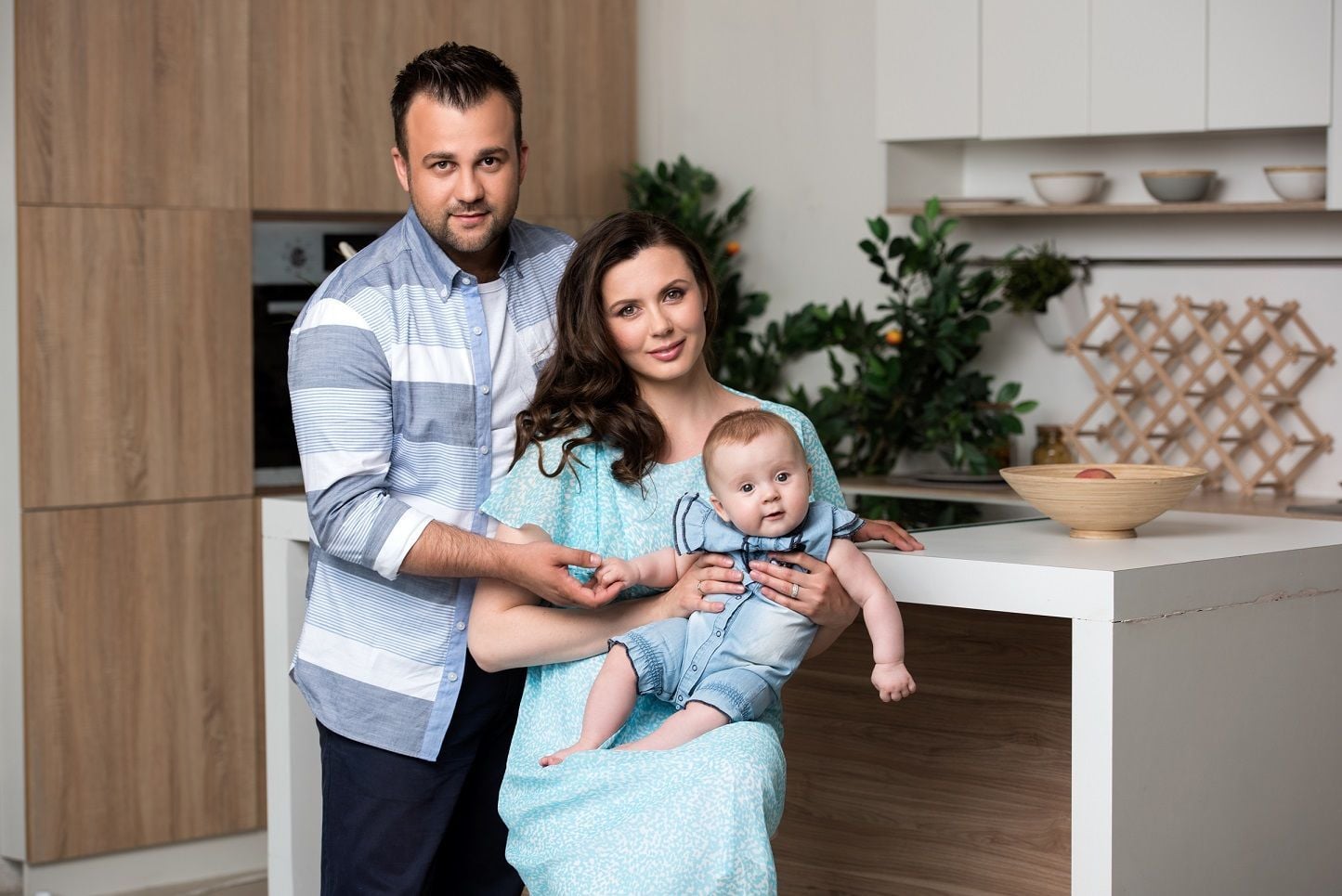 Семья позировала для журнала "Теленеделя". В интервью изданию молодой папа рассказал о том, как изменилась его жизнь с появлением крохи, разделении семейных обязанностей и о том, как он совмещает отцовство с работой над новым сезоном "Життя без обману".