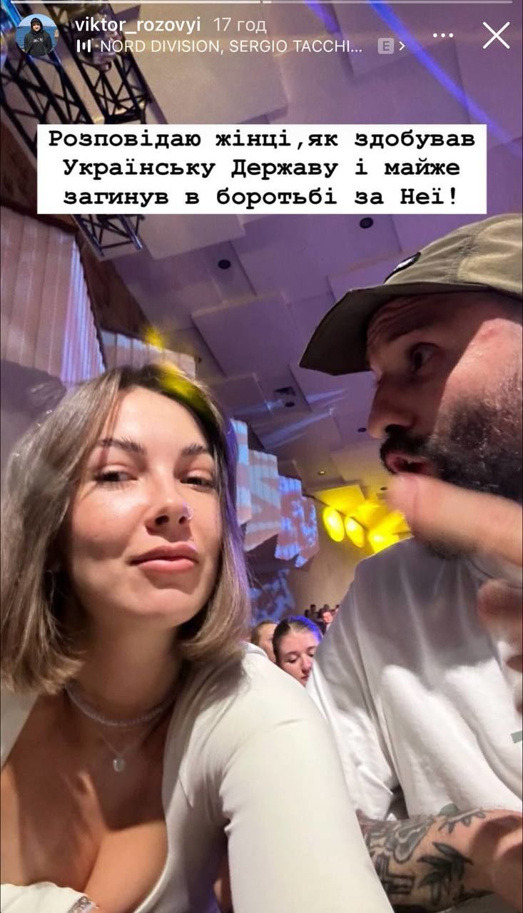 Вероятно, возлюбленные побывали на светском событии, ведь знаменитость показала еще один снимок из зрительного зала. К слову, Розовый вспомнил также за свое прошлое, когда защищал Украину, и посвятил этому совместное фото с Ольгой: "Рассказываю женщине, как боролся за украинское государство и почти погиб в борьбе за него!"