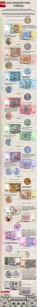 В честь 20 годовщины со дня рождения гривны ТСН.uа подготовил инфографики, из которых можно узнать, кто изображен на купюрах, какие символы спрятались на банкнотах и увидеть эволюцию гривны.