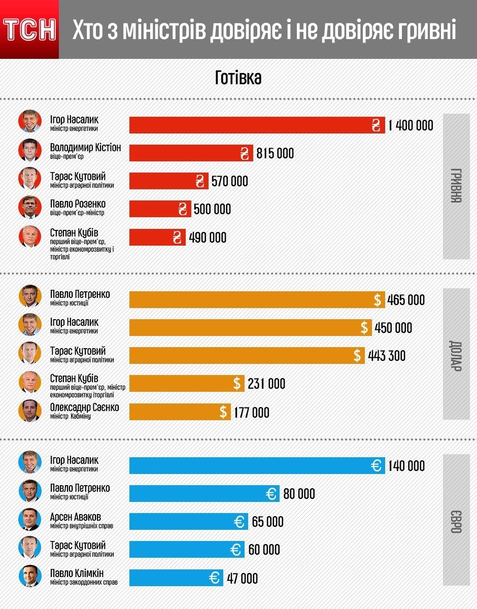 Сколько наличных держат украинские министры и насколько они доверяют гривне: Инфографика