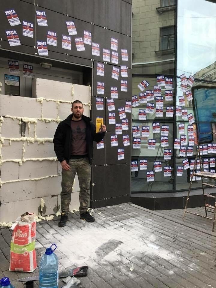 Сегодня, 10 апреля, утром активисты "Азова" заблокировали отделение российского "Сбербанка" в Харькове. Вход в финучреждение они замуровали бетонными блоками и залили монтажной пеной.