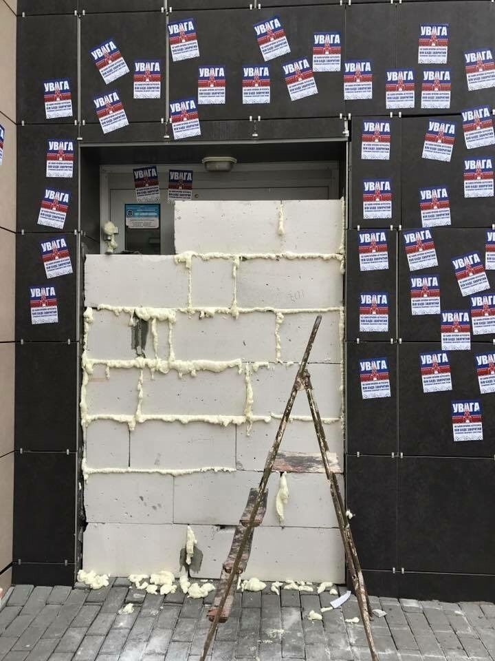 В Харькове вход в "Сбербанк" замуровали бетонными блоками