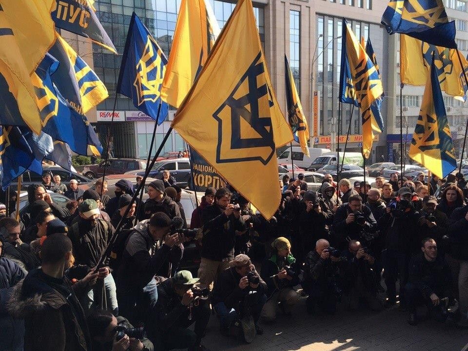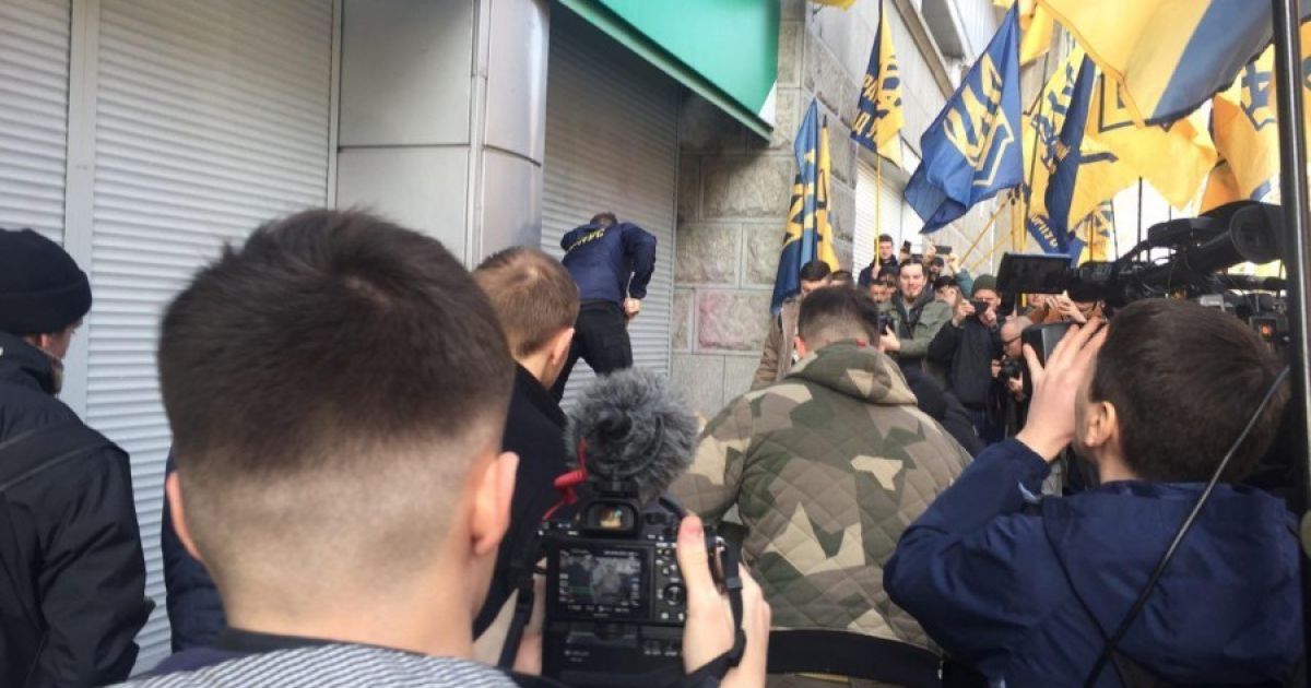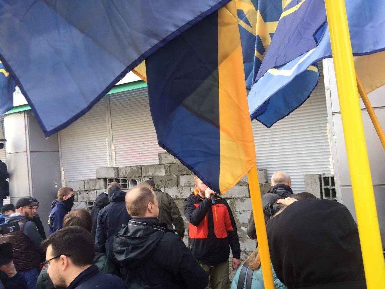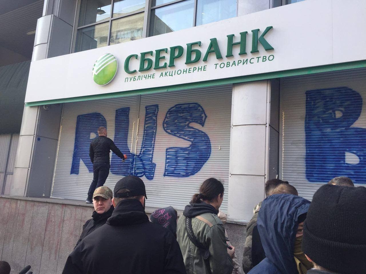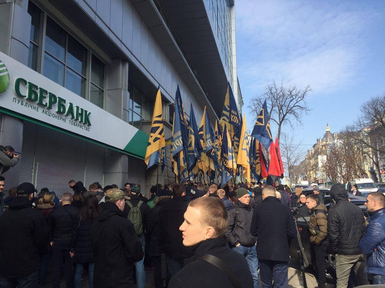 В эти минуты в Киеве активисты из "Национального корпуса" ("Азов") замуровывают цементом и бетонными блоками вход в центральный офис российского "Сбербанка". Кроме того, щели между рольставнями забрызгали монтажной пеной. Таким образом они требуют прекращения деятельности этого финучреждения на территории Украины.