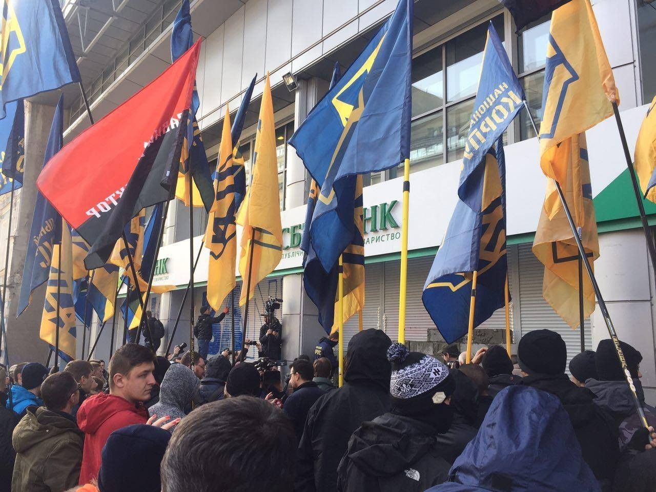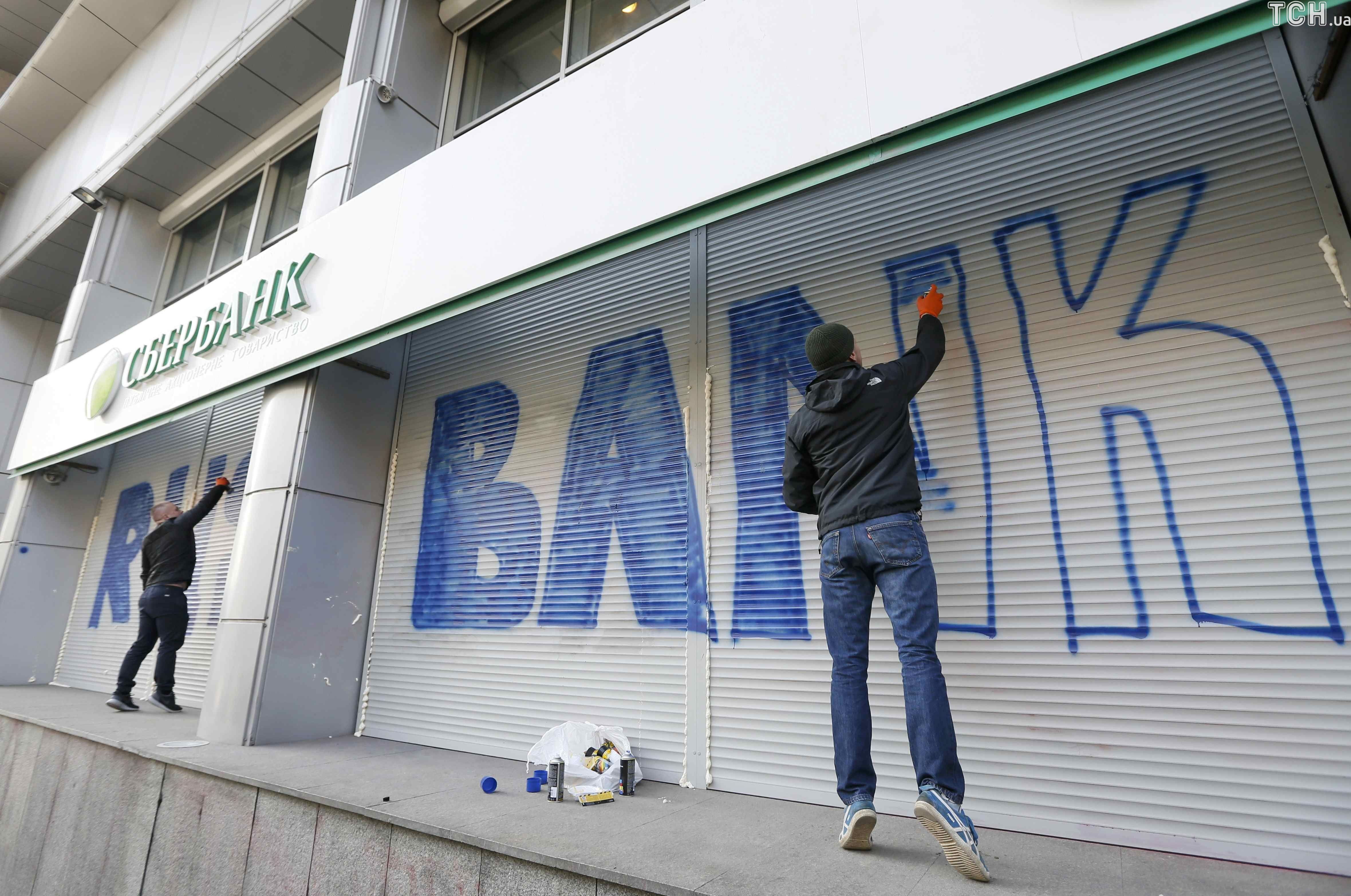 Активисты требуют приостановить работу российского банка на территории Украины.