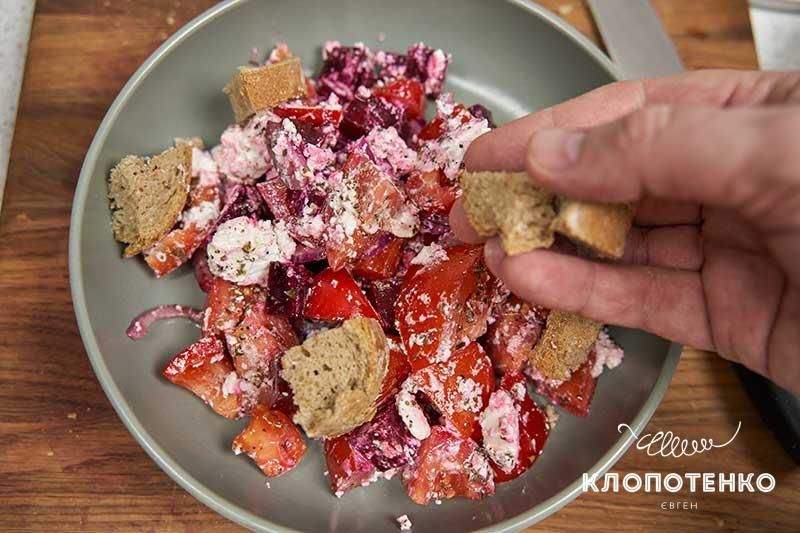 Салат со свеклой и сухариками из ржаного хлеба: рецепт от Евгения Клопотенко