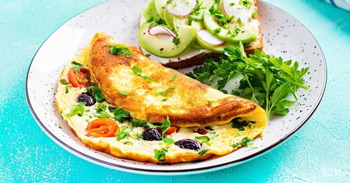 Вкусный омлет с оливками и помидорами на завтрак