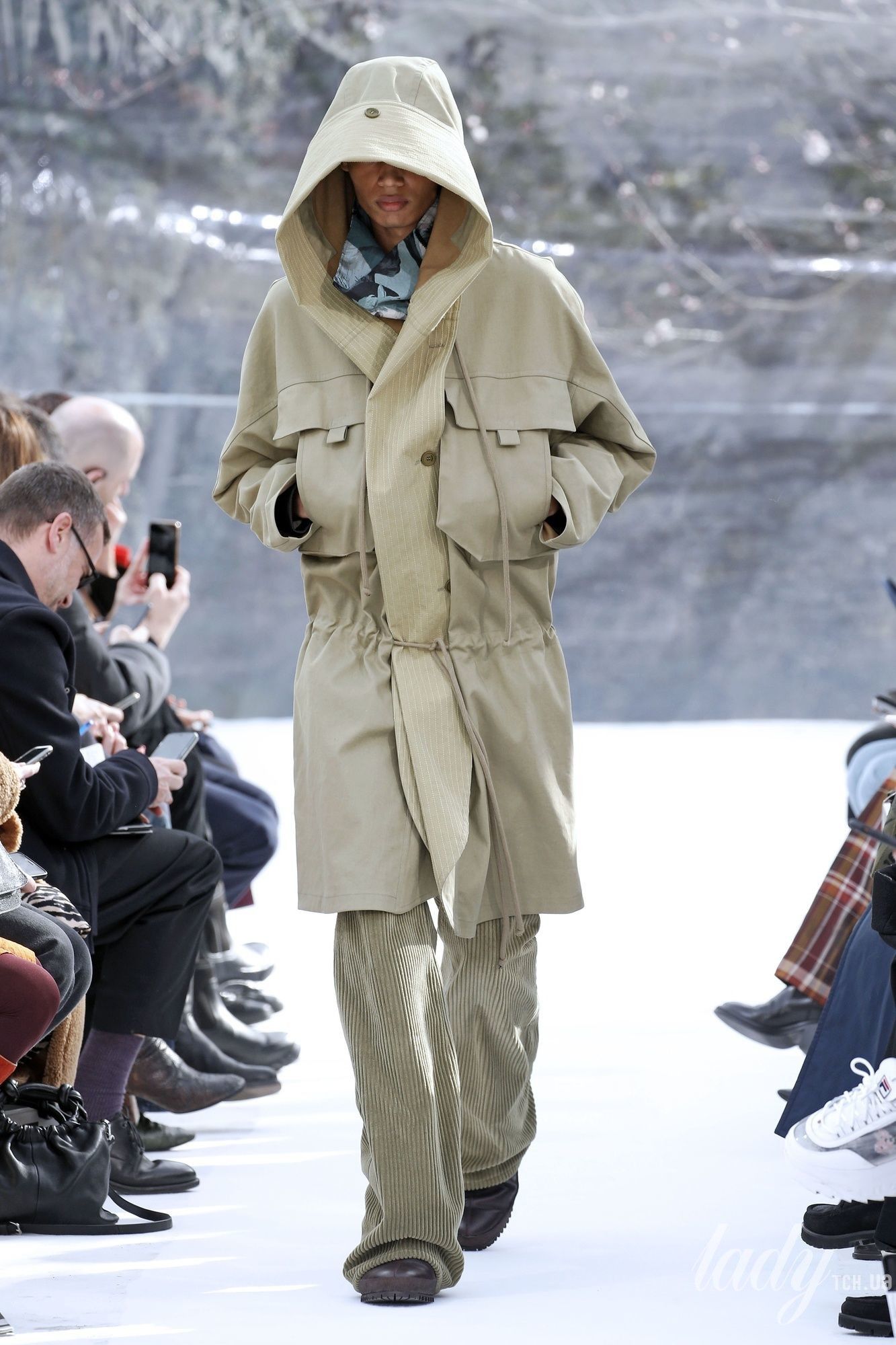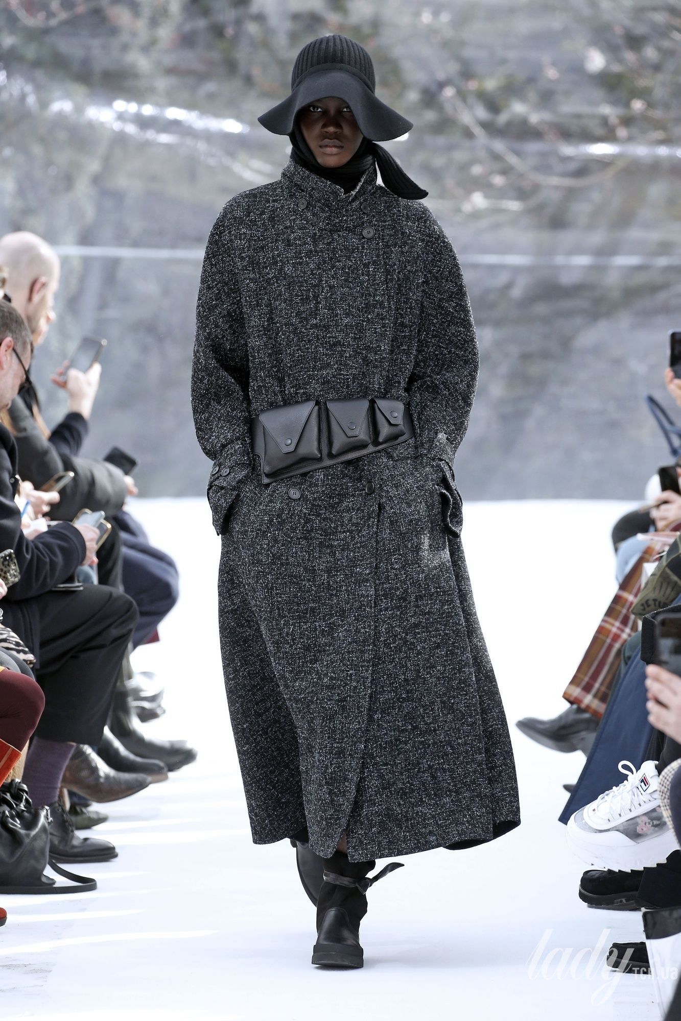 В коллекции присутствуют также плащи и куртки довольно сложного кроя с обилием деталей или многослойные.