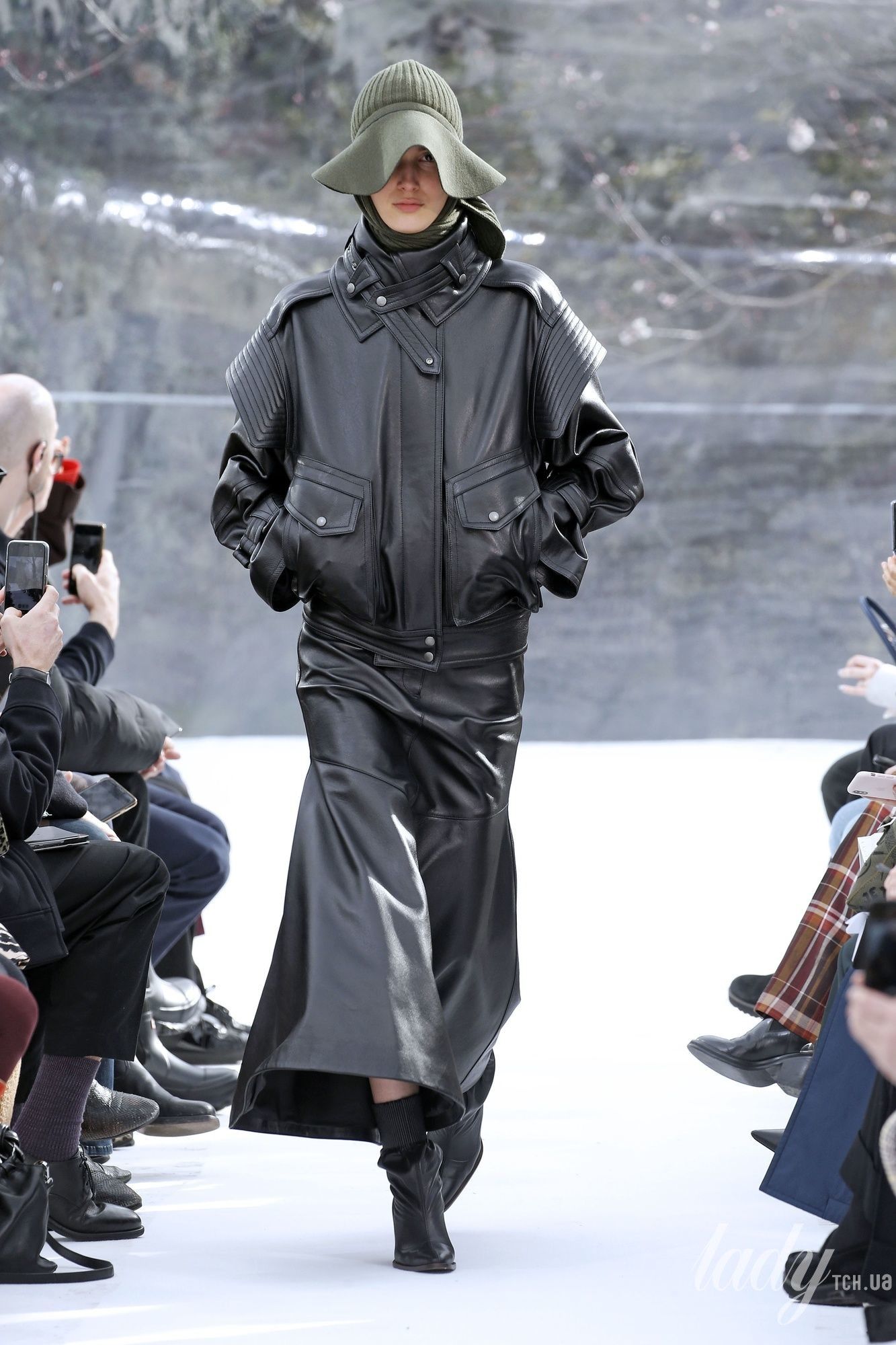 Вполне отвечает сезону обилие кожи и трикотажа довольно толстого вязки "в лапшу", а вот туники из льна с принтом выглядят довольно неожиданно.