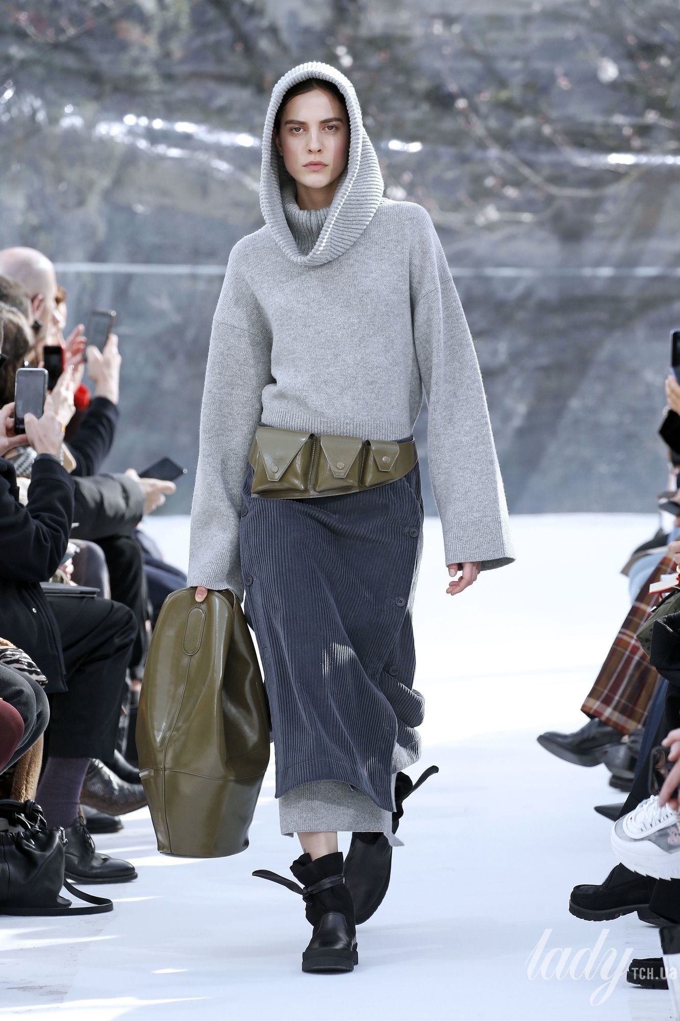 Очень красивый трикотаж, свитеры с капюшоном, платья обещают стать хитом будущего сезона.