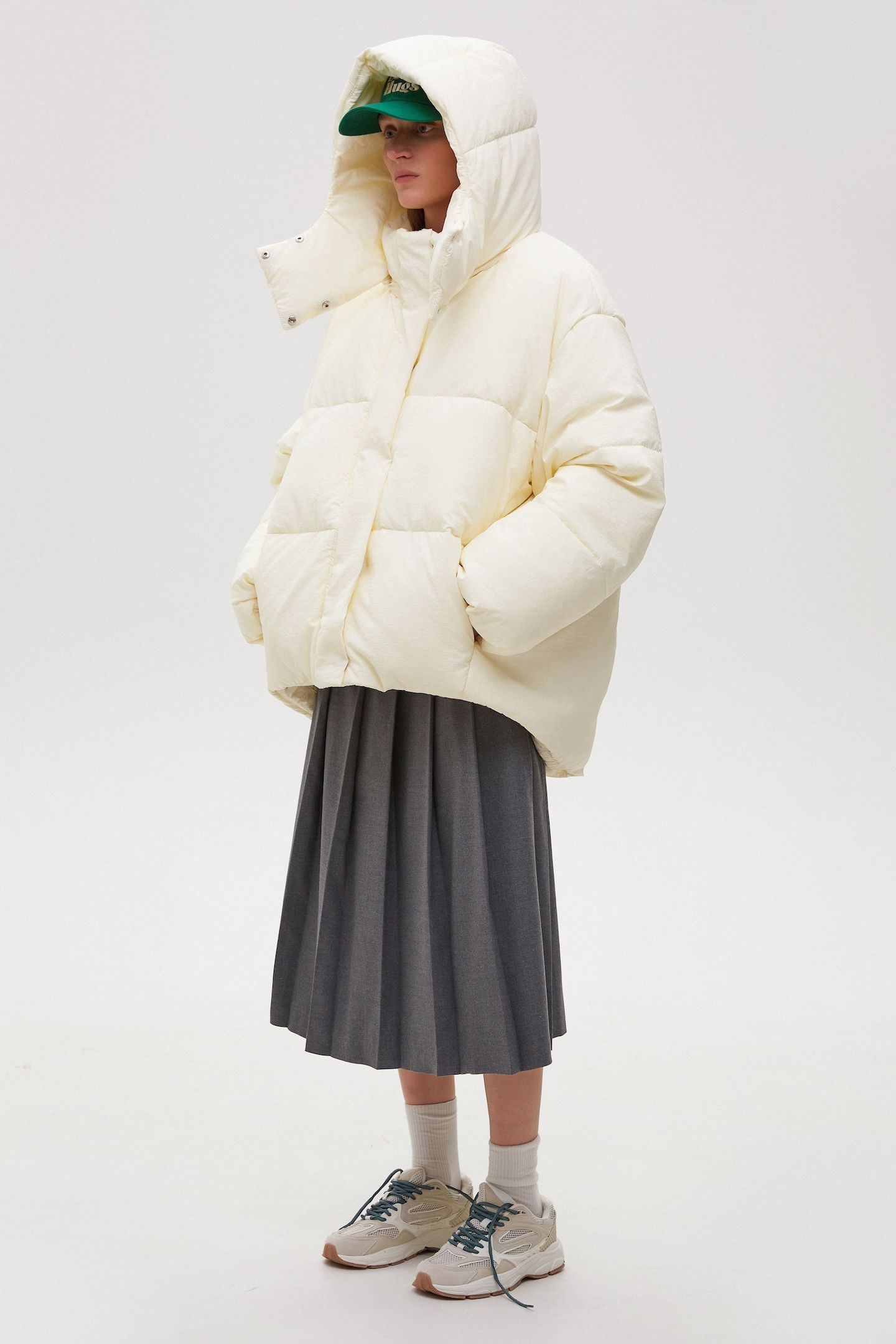 Главными героями дропа стали пуховики оверсайза и сдержанные костюмы с юбкой.