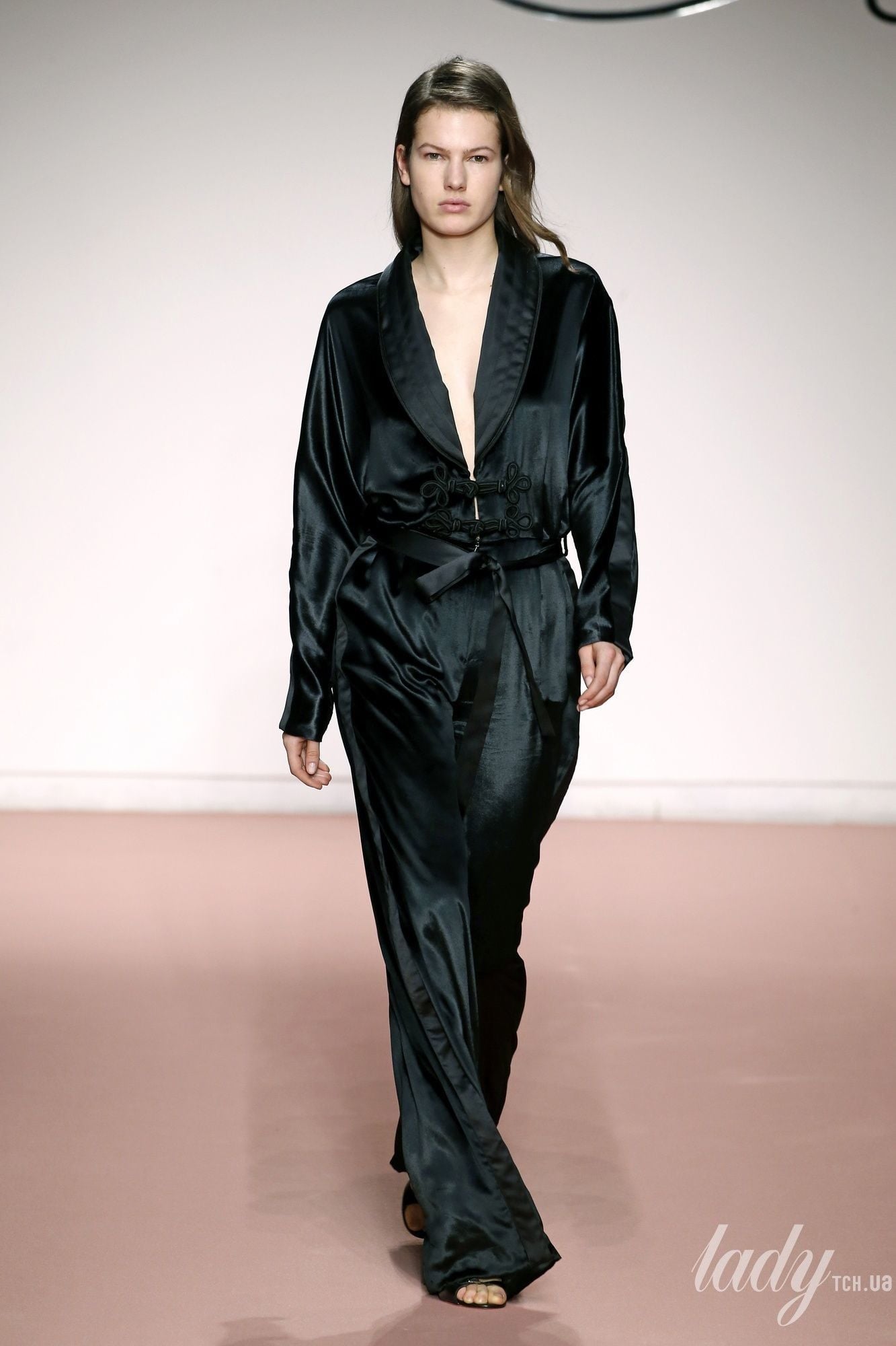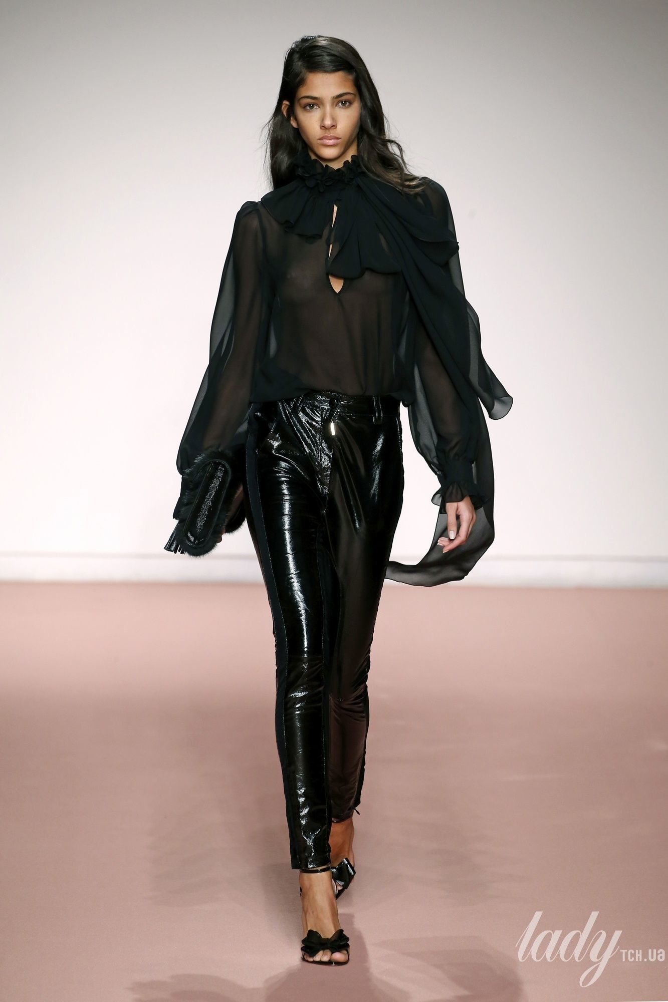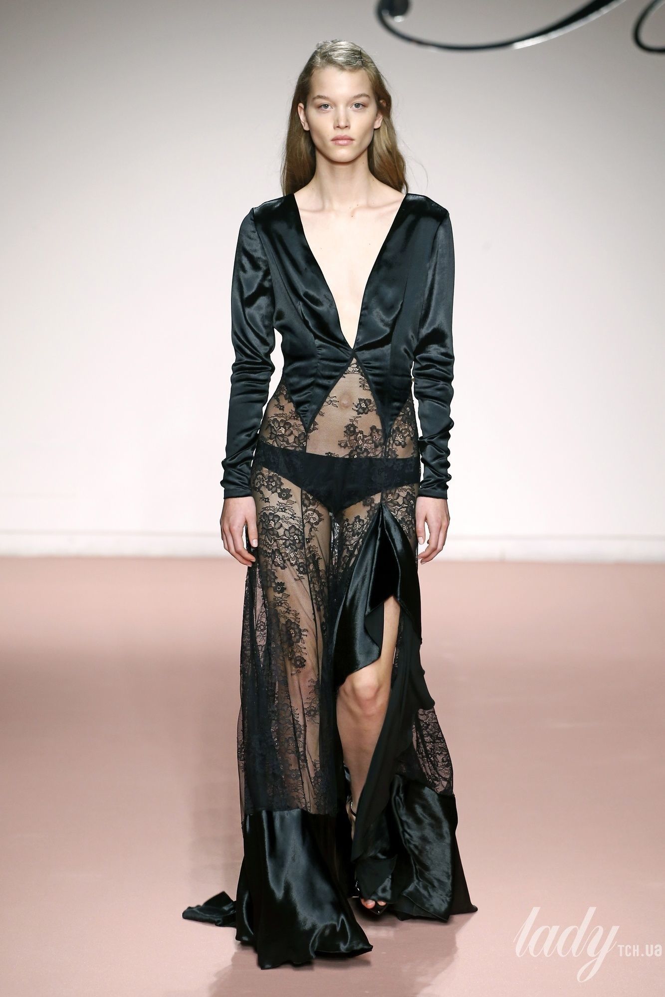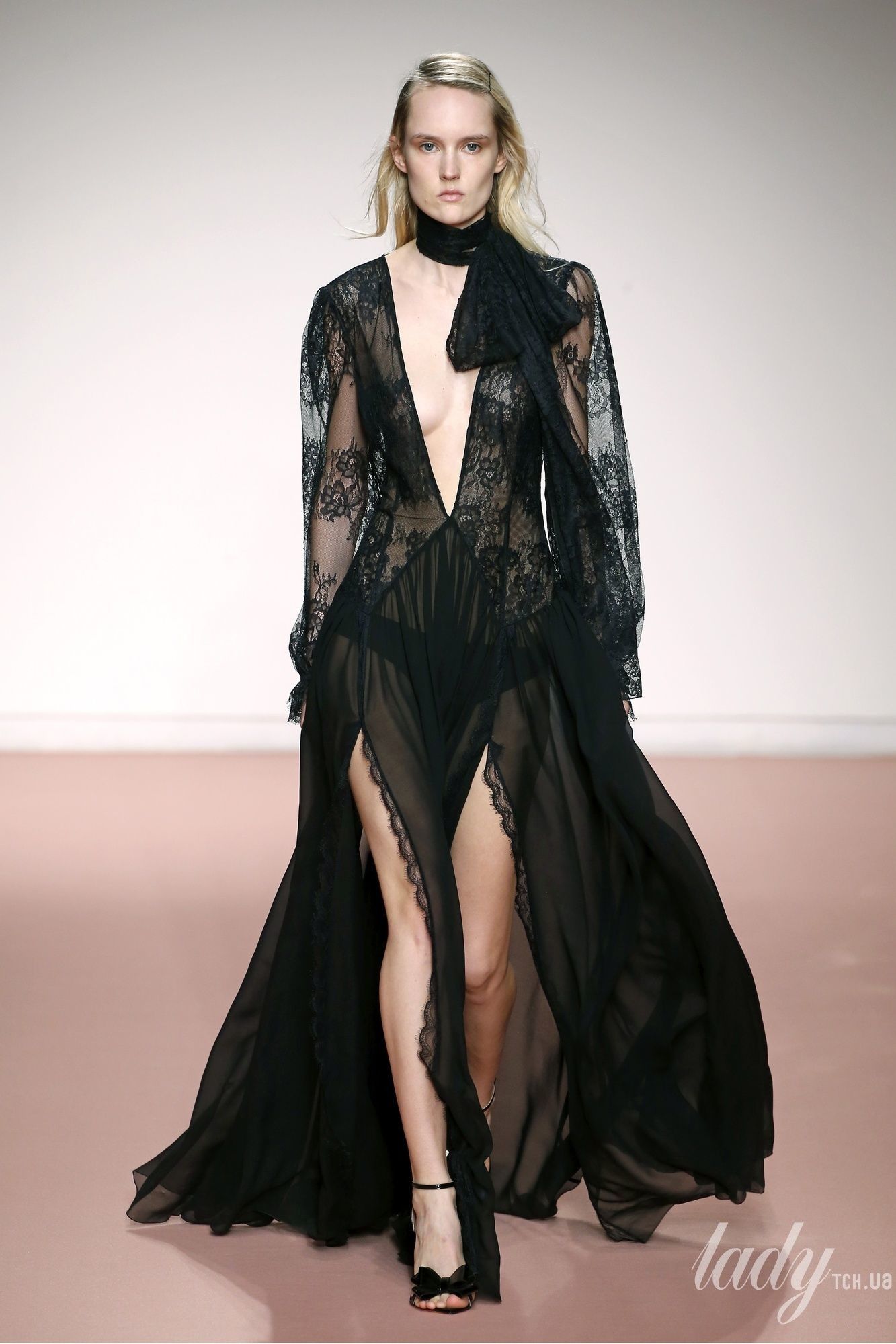 Из материалов предпочтение отдано полупрозрачному шифону, кружеву, лаковой коже, атласу и бархату.
