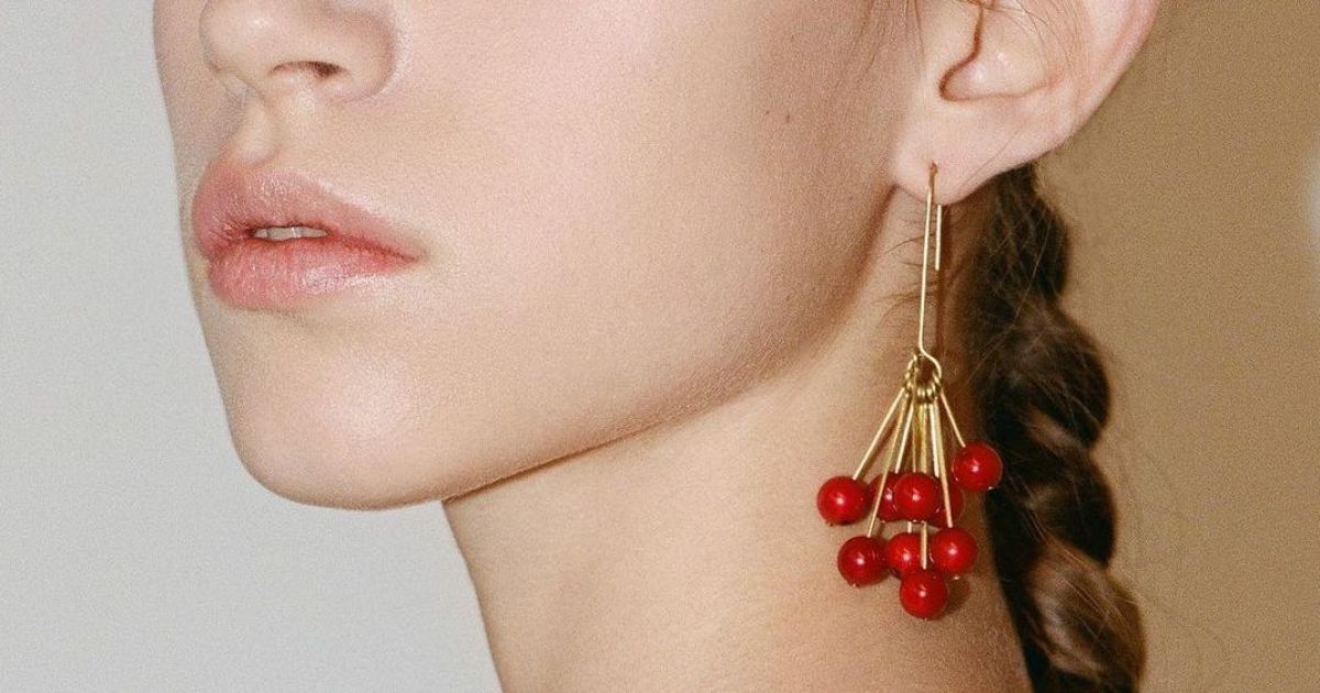 Этот аксессуар впервые был представлен на Неделе моды в Нью-Йорке, всего за 10 дней до полномасштабного вторжения России в Украину. Основа серьги выполнена из латуни, а красные "ягоды" - из кораллов. Стоимость такого украшения - 155 евро.