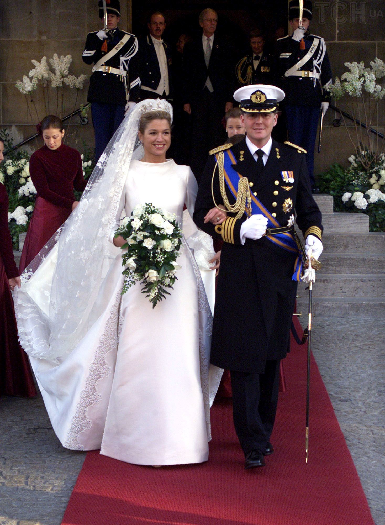 2 февраля 2002 года Максима Соррегьета Черрут вышла замуж в Амстердаме за принца Нидерландов. Для венчания невеста выбрала шелковое свадебное платье цвета слоновой кости от Valentino лаконичного дизайна. У наряда были рукава три четверти, воротник-стойка и юбка с кружевными вставками и длинным шлейфом. Как и любая королевская невеста Максима дополнила образ длинной фатой и тиарой.