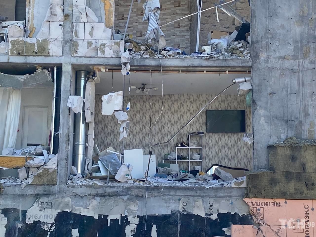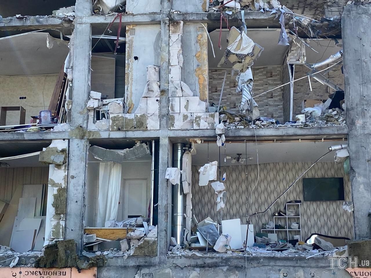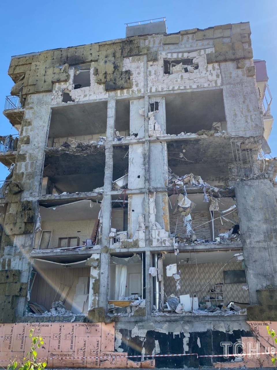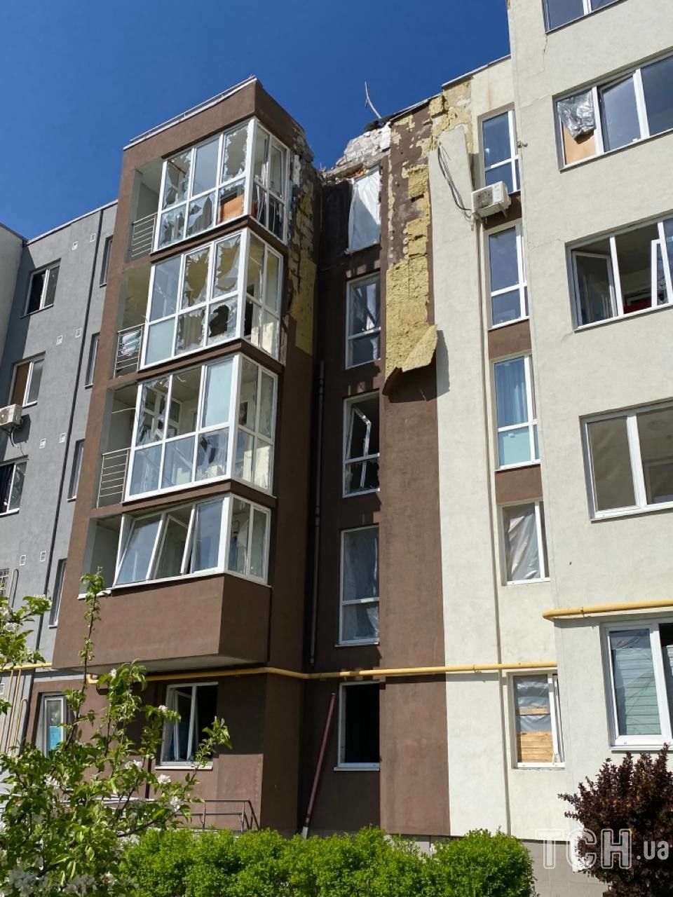 На следующий день рашисты выпустили авиабомбу в дом напротив и разрушили его.