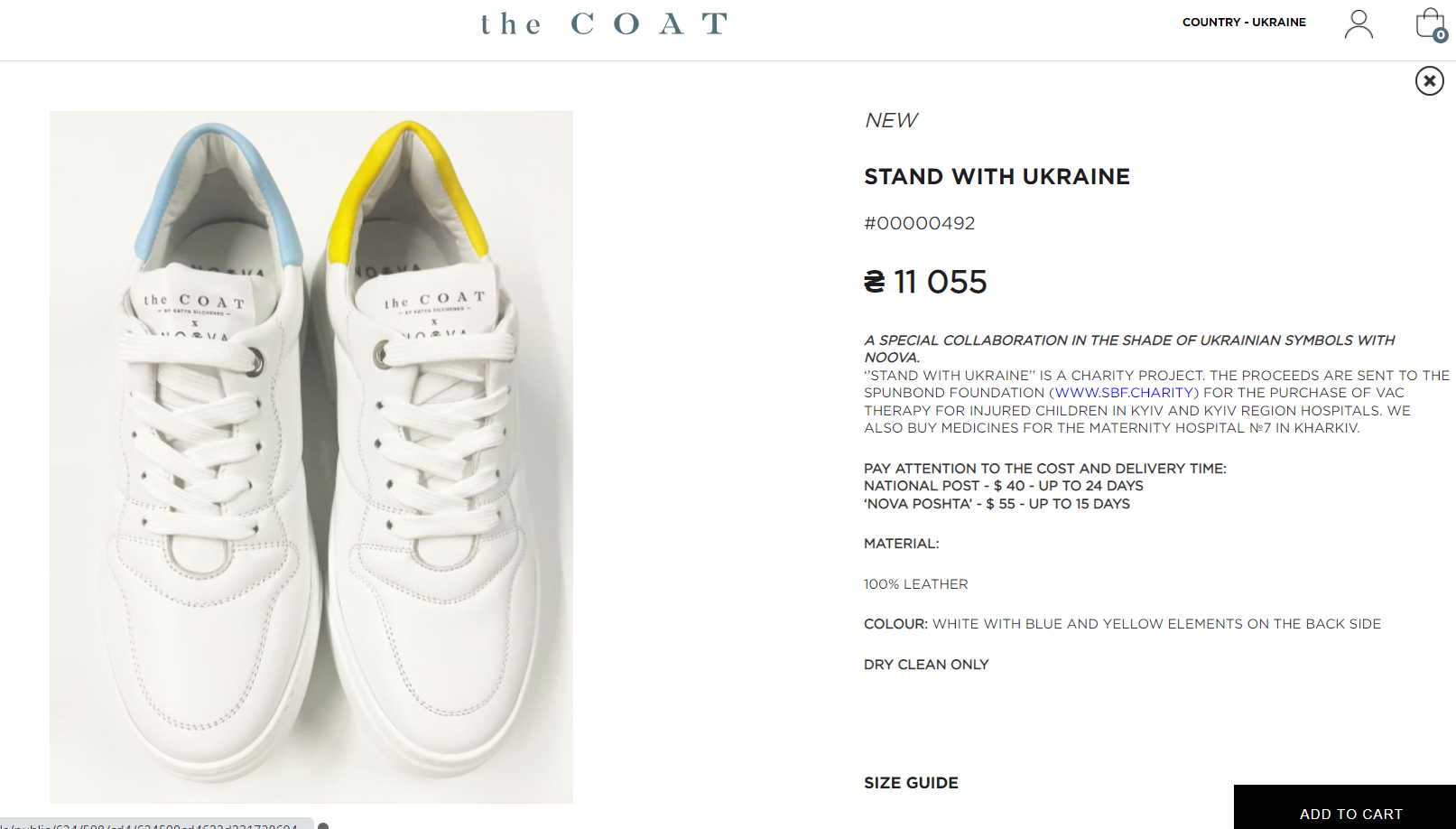 Модель, которую выбрала первая леди Украины, носит название Stand With Ukraine. Вырученные средства от продажи этой пары обуви бренд перечисляет на благотворительность.
