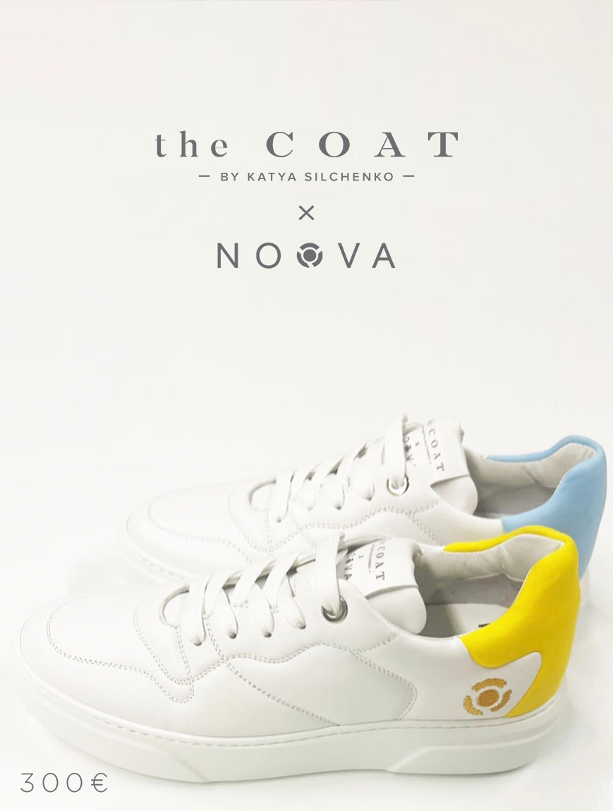 Обувь Елены Зеленской особо обращала на себя внимание, ведь была с патриотическими деталями - задники кед были выполнены в голубом и желтом цветах. Автором этой обуви является украинский бренд the Coat, основанный дизайнером Катей Сильченко в 2014 году.