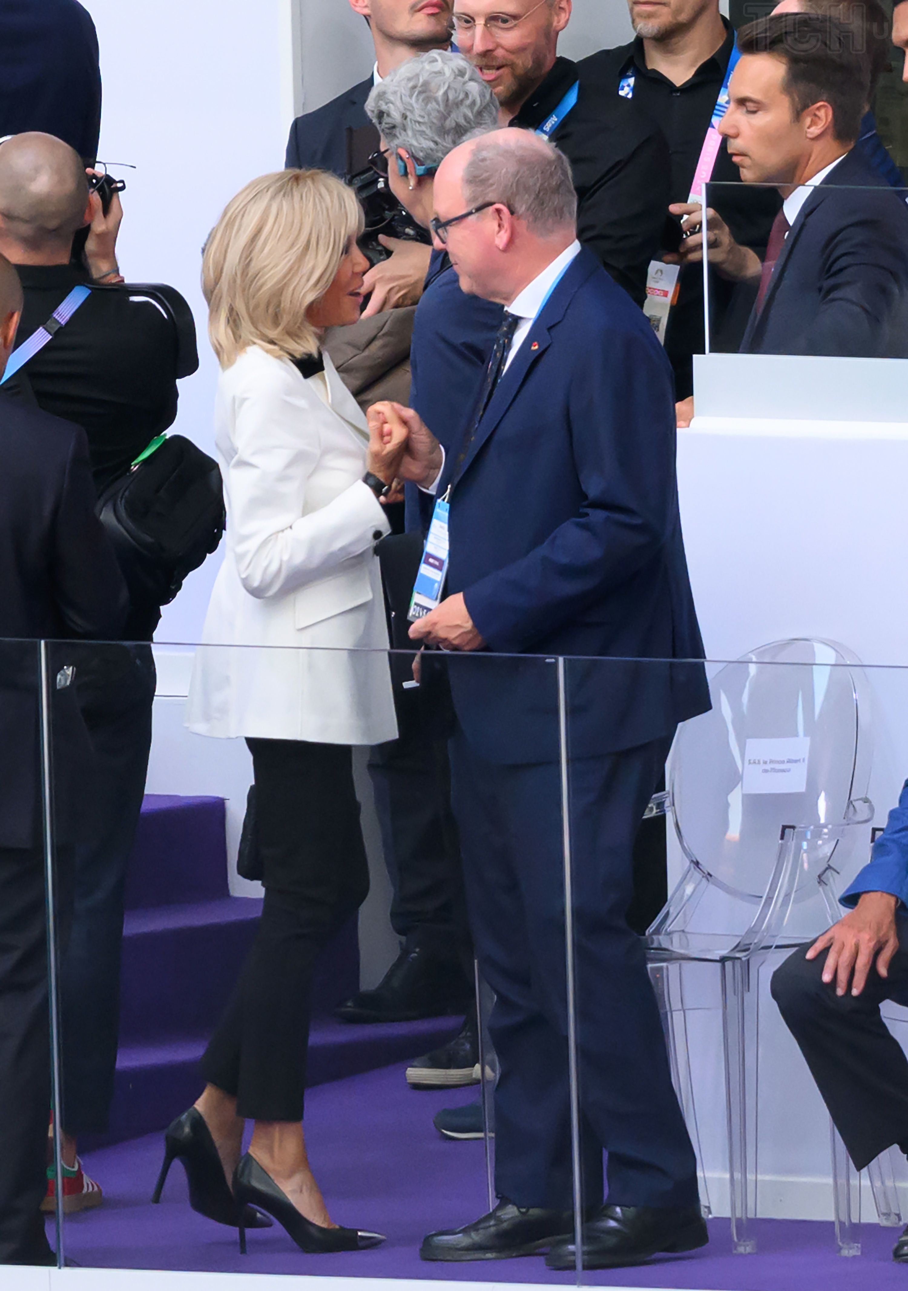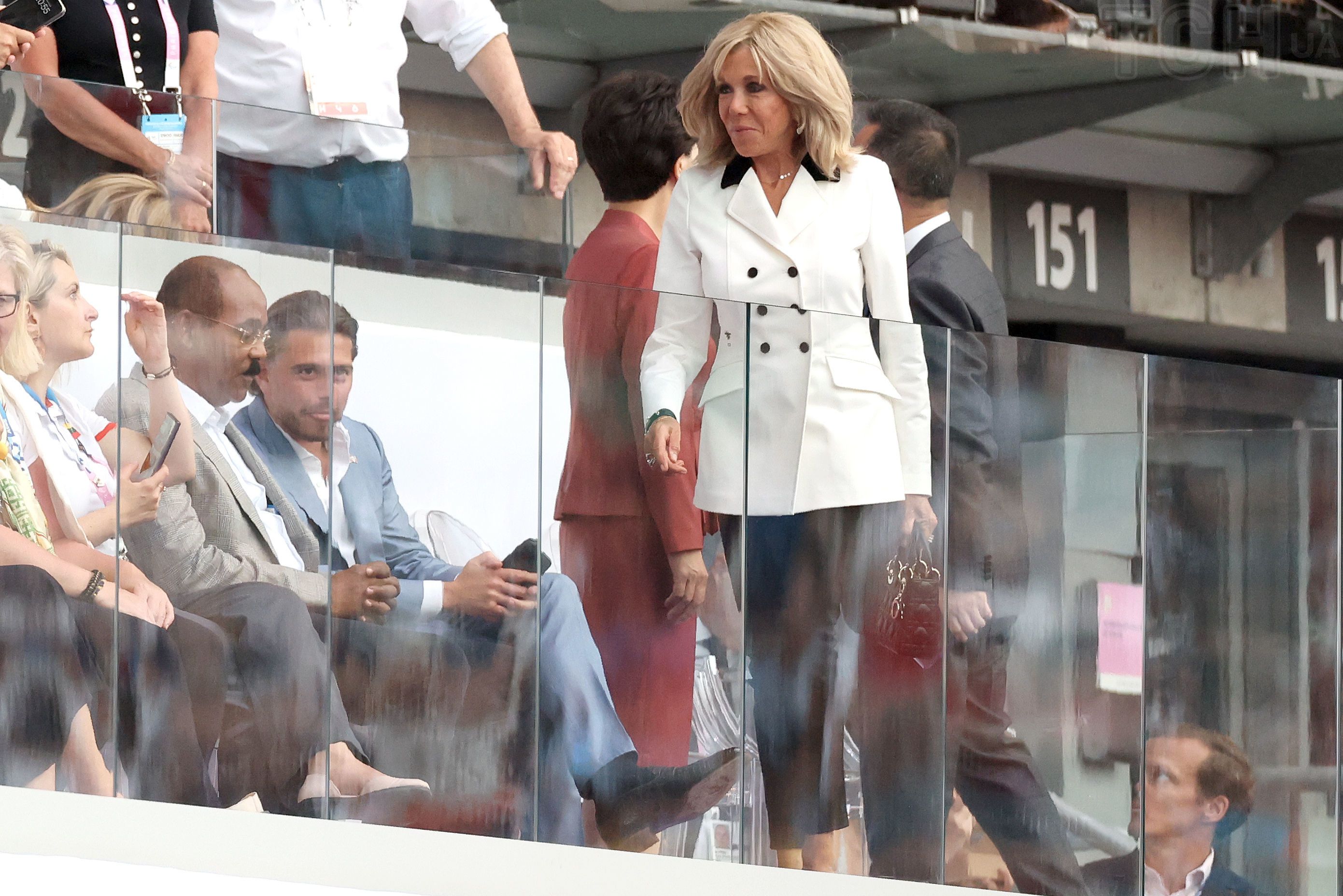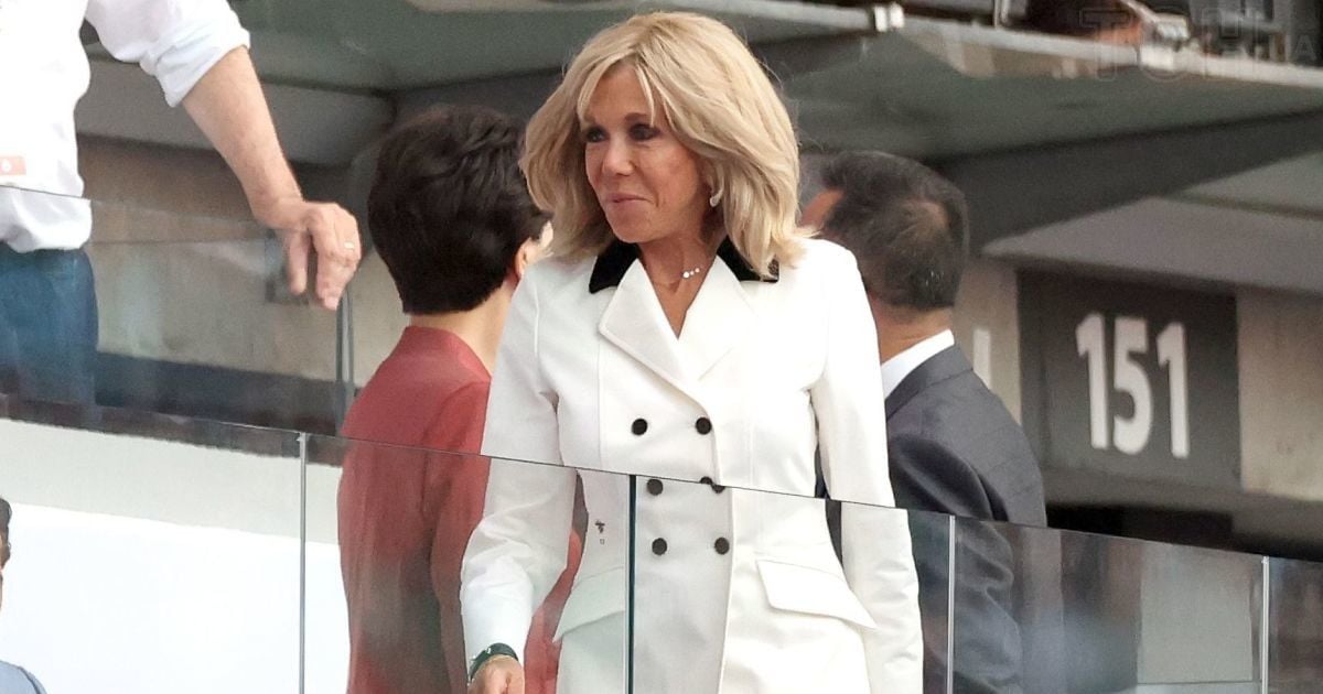 Как всегда, стильная: Брижит Макрон в белом жакете и на шпильках появилась на закрытии Олимпийских игр