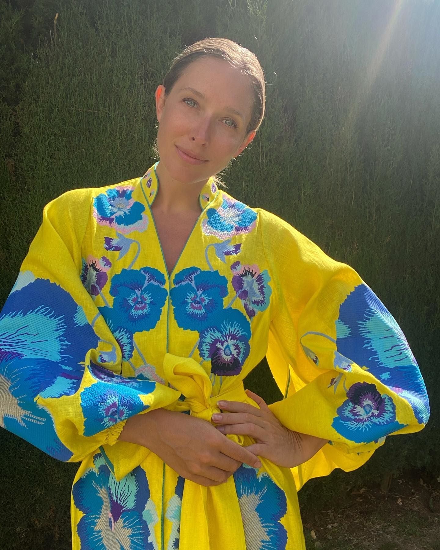 Кстати, в таком же платье-вышиванке поздравила украинцев с Днем вышиванки и сам ее автор — Юлия Магдыч.