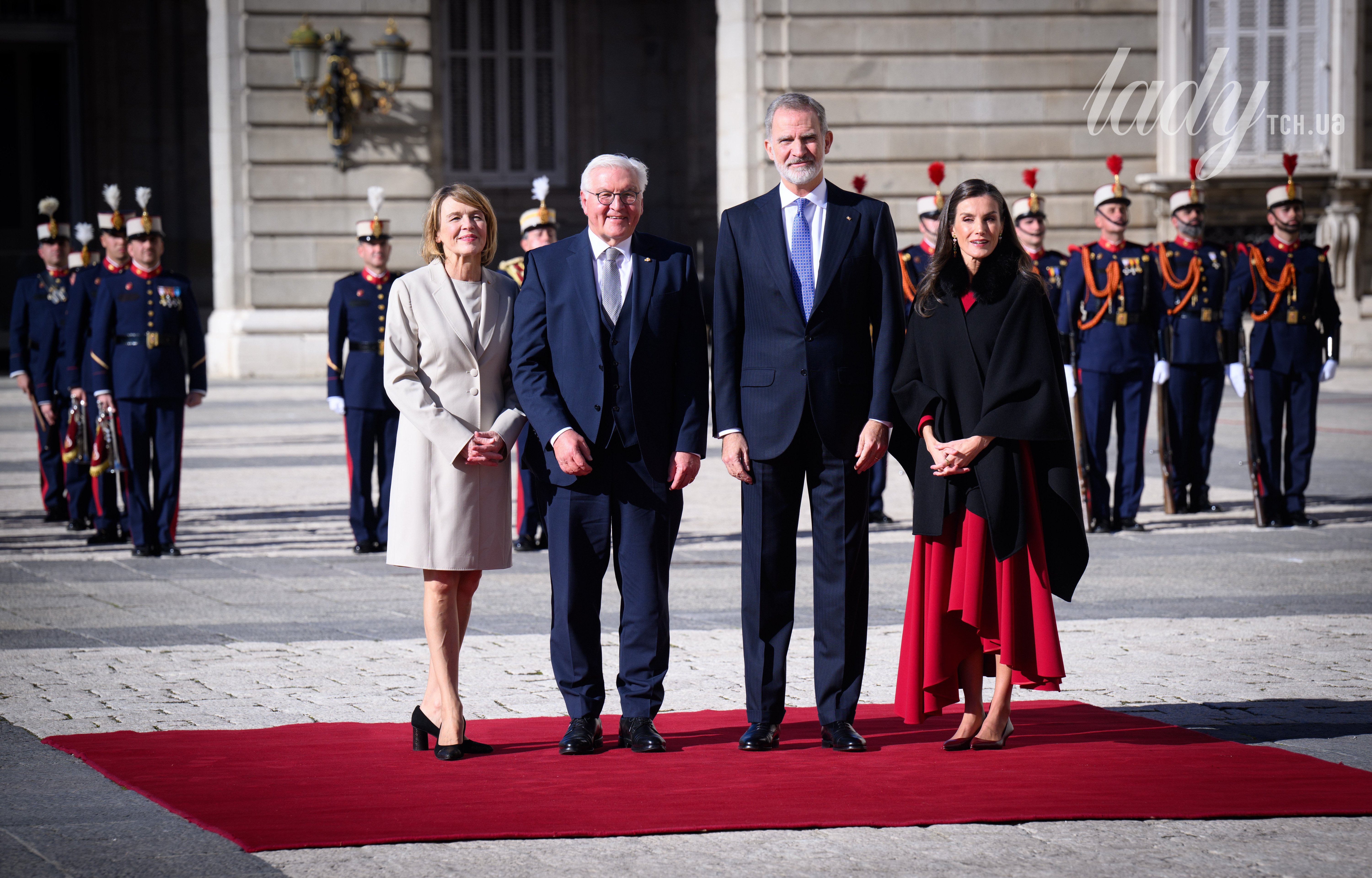 Королева Летиция в ярком платье и король Филипп VI приветствовали в Мадриде президента Германии и первую леди