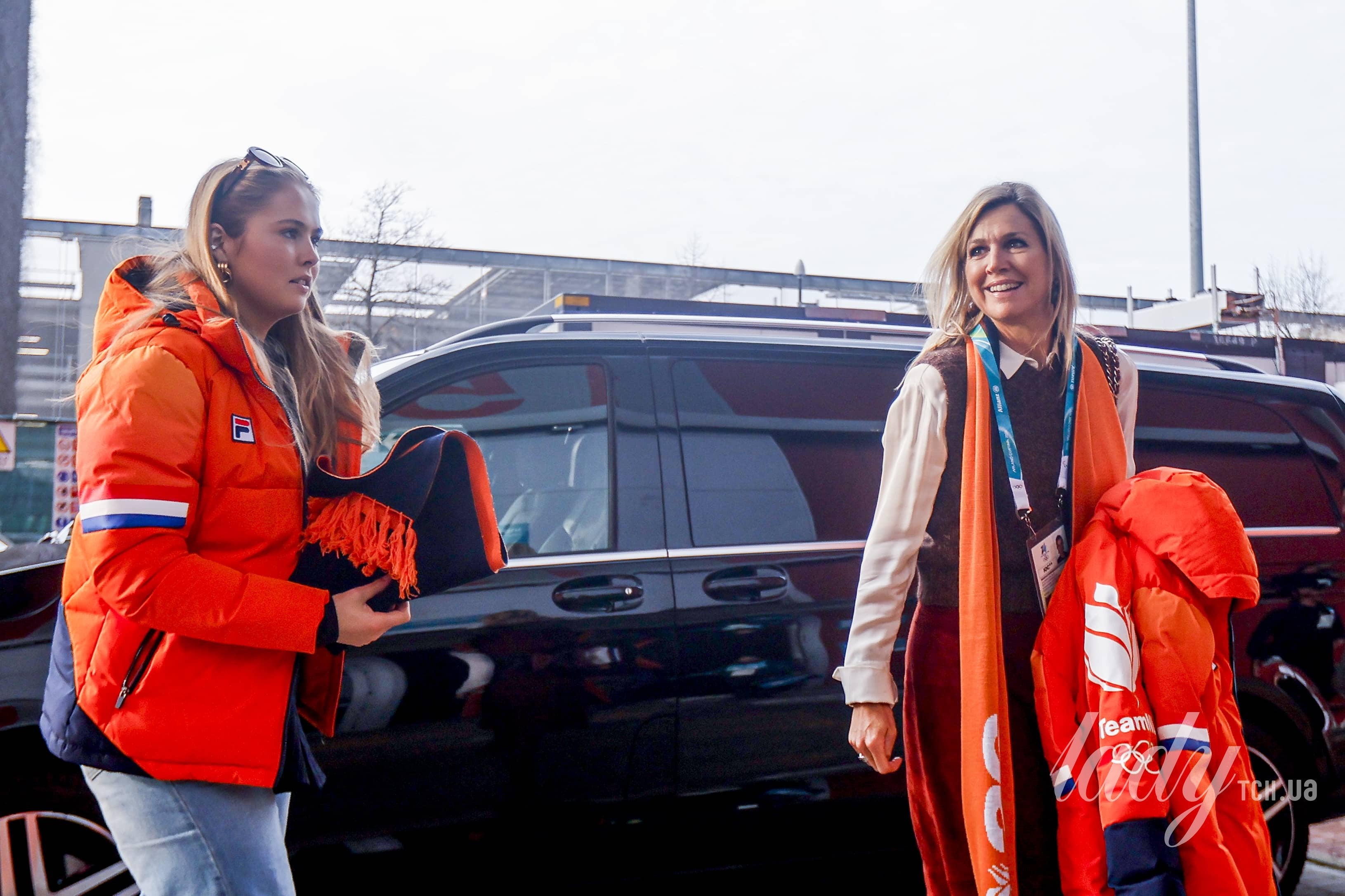 Королева Максима снова была запечатлена фотографами в компании своей 22-летней дочери — принцессы Катарины-Амалии. Мать и дочь сфотографировали по прибытию на стадион для конькобежного спорта в Милане во второй день зимних Олимпийских игр 2026 года.