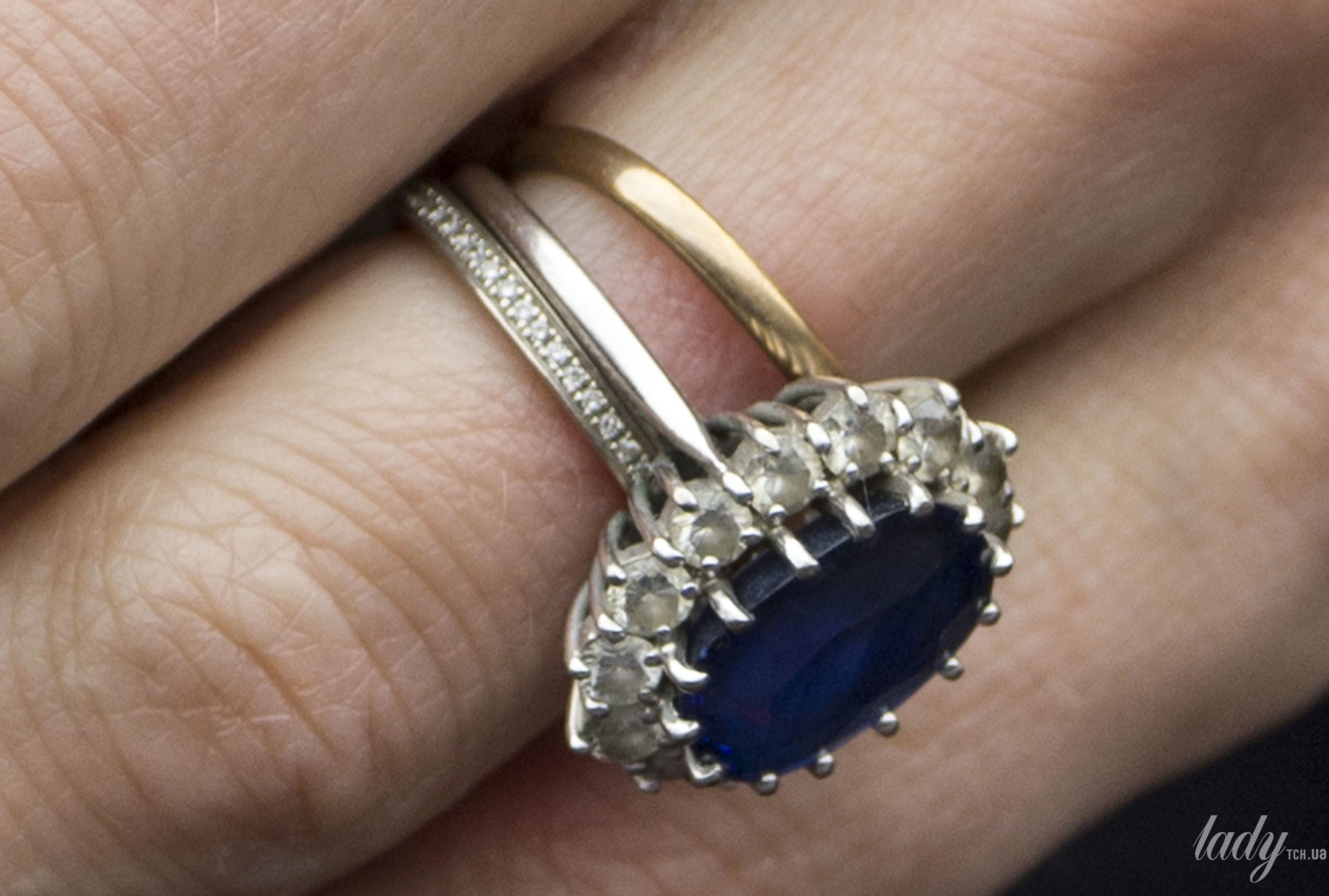 Сочетала его принцесса Уэльская со своим обручальным кольцом из валлийского золота, а также кольцом Annoushka из белого золота с бриллиантами, которое она начала носить вскоре после рождения их первенца, принца Джорджа, в 2013 году, которое, как многие считают, было подарком от принца Уильяма.