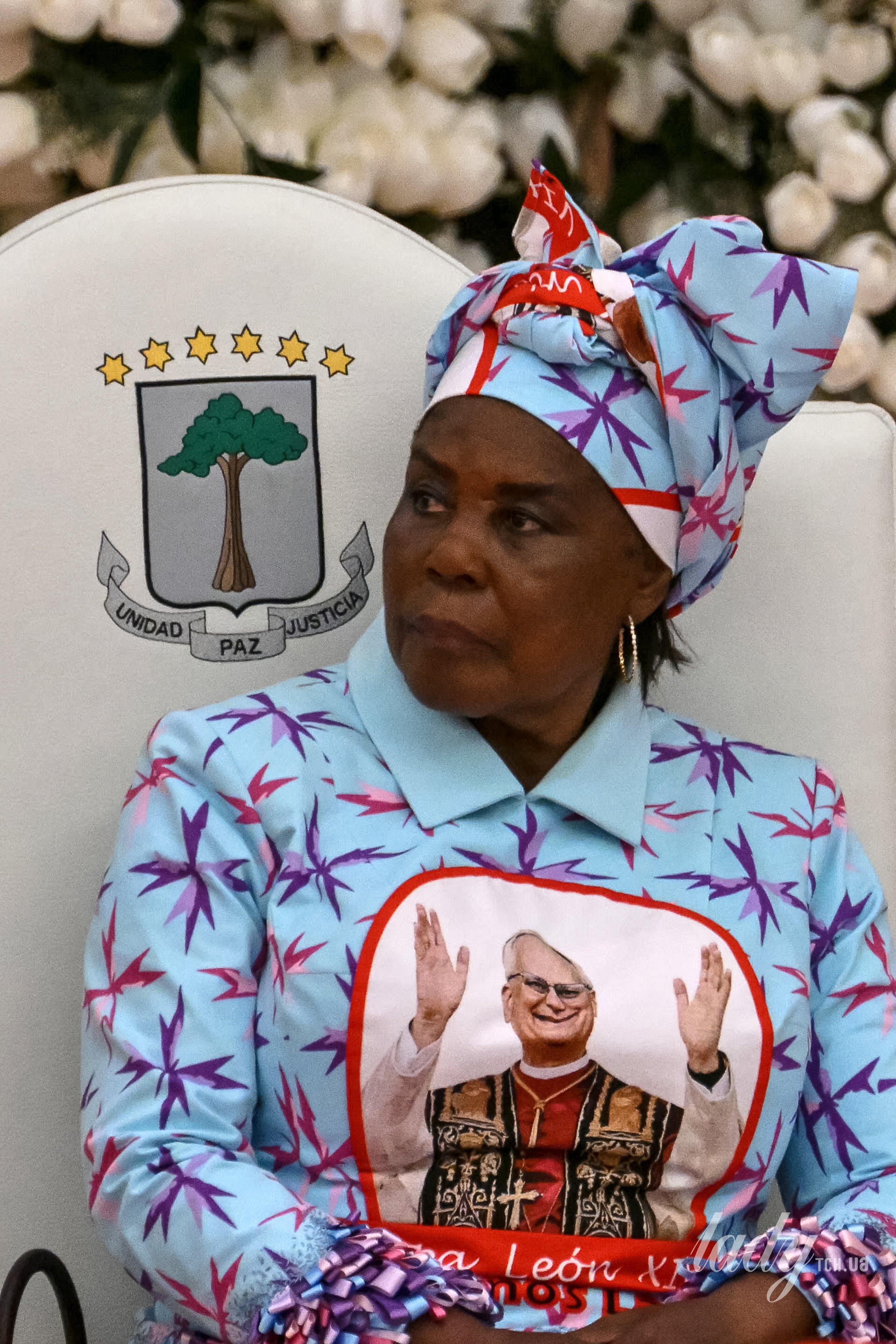 Первая леди Экваториальной Гвинеи надела костюм с портретом Папы Римского