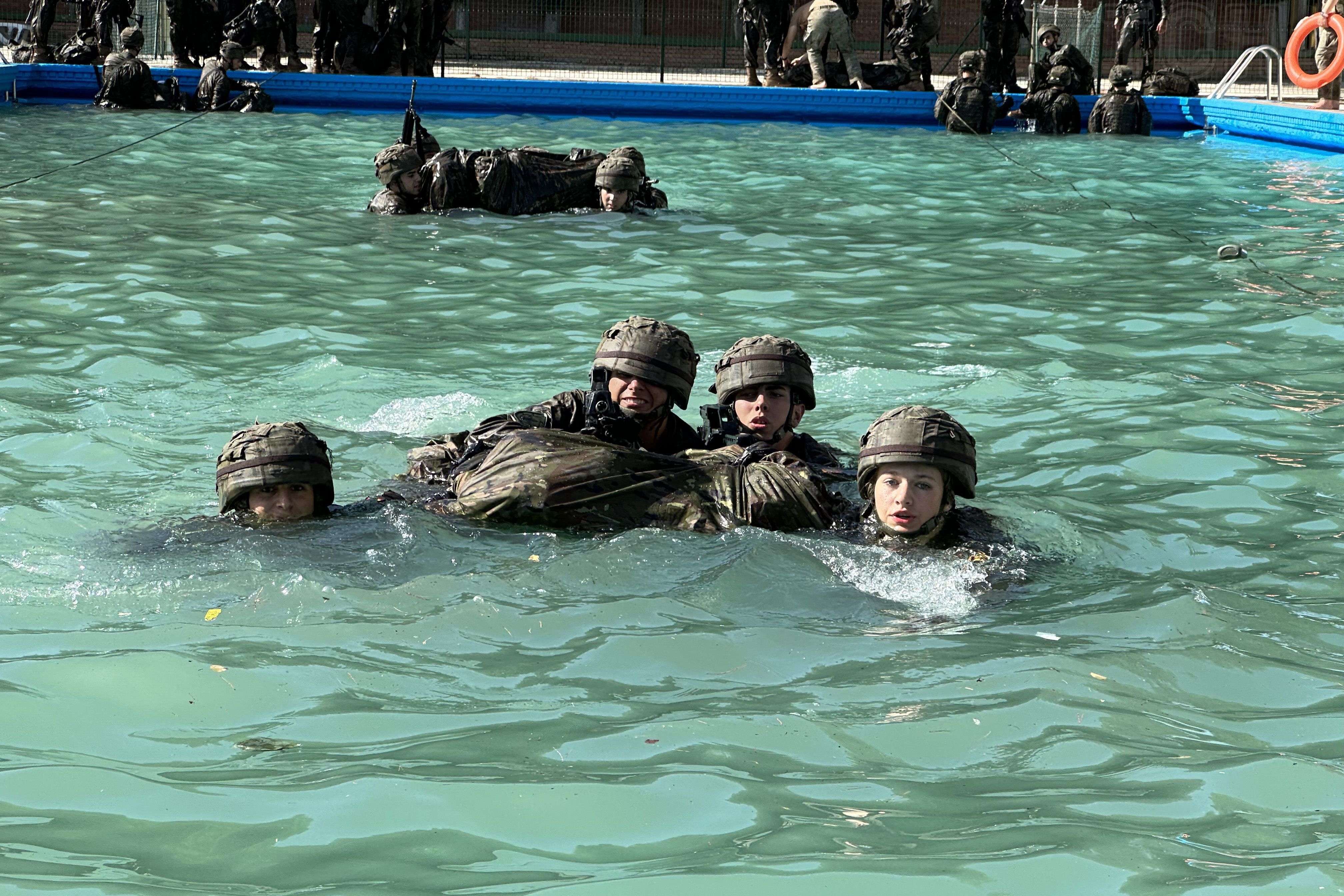 На одном из снимков, сделанных во время учений, видно, как принцесса улыбается вместе со своими товарищами-кадетами, одетая в форму и держащая в руках что-то похожее на винтовку. На другой фотографии она позирует с однокурсниками, одетая в камуфляж и защитное снаряжение.
