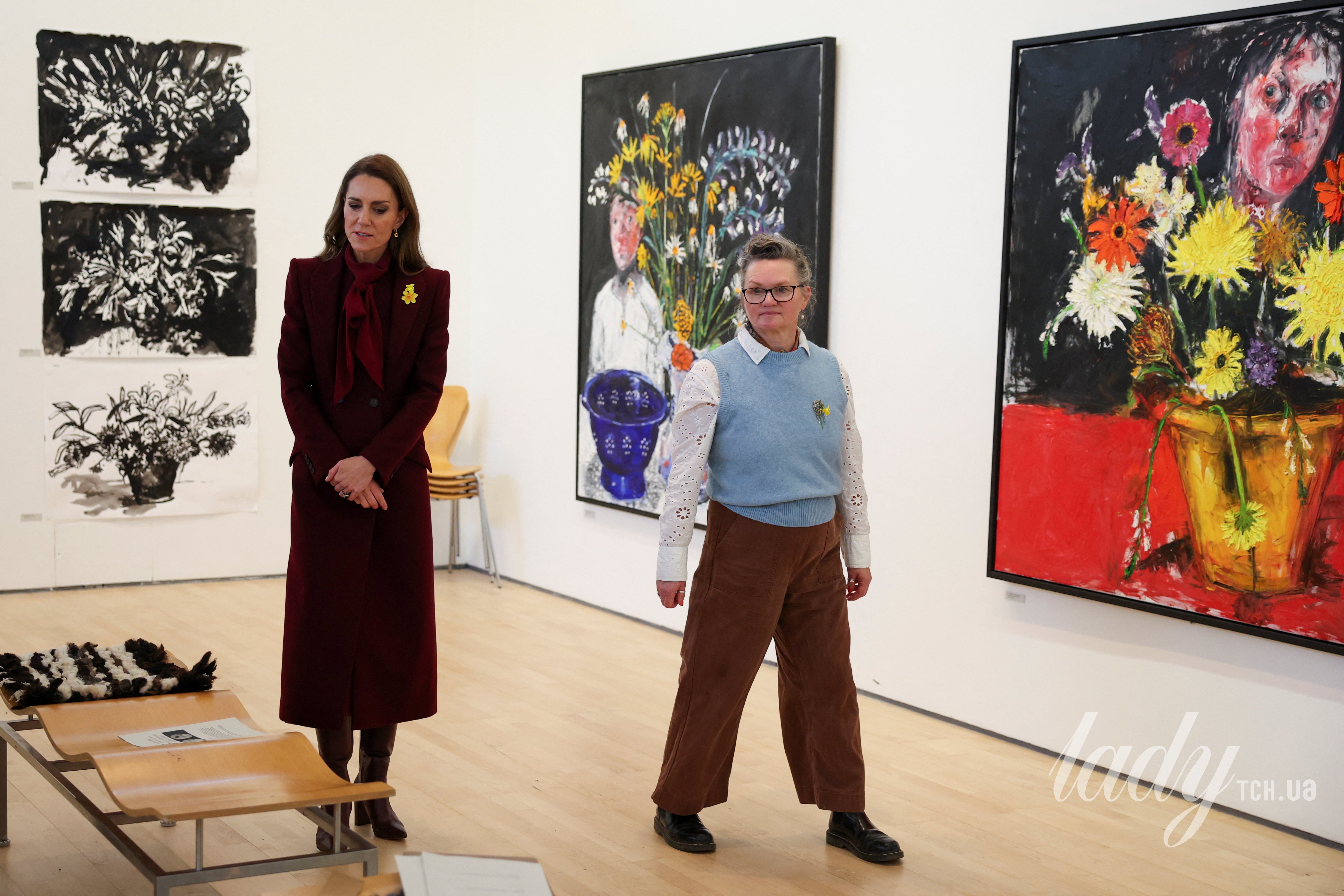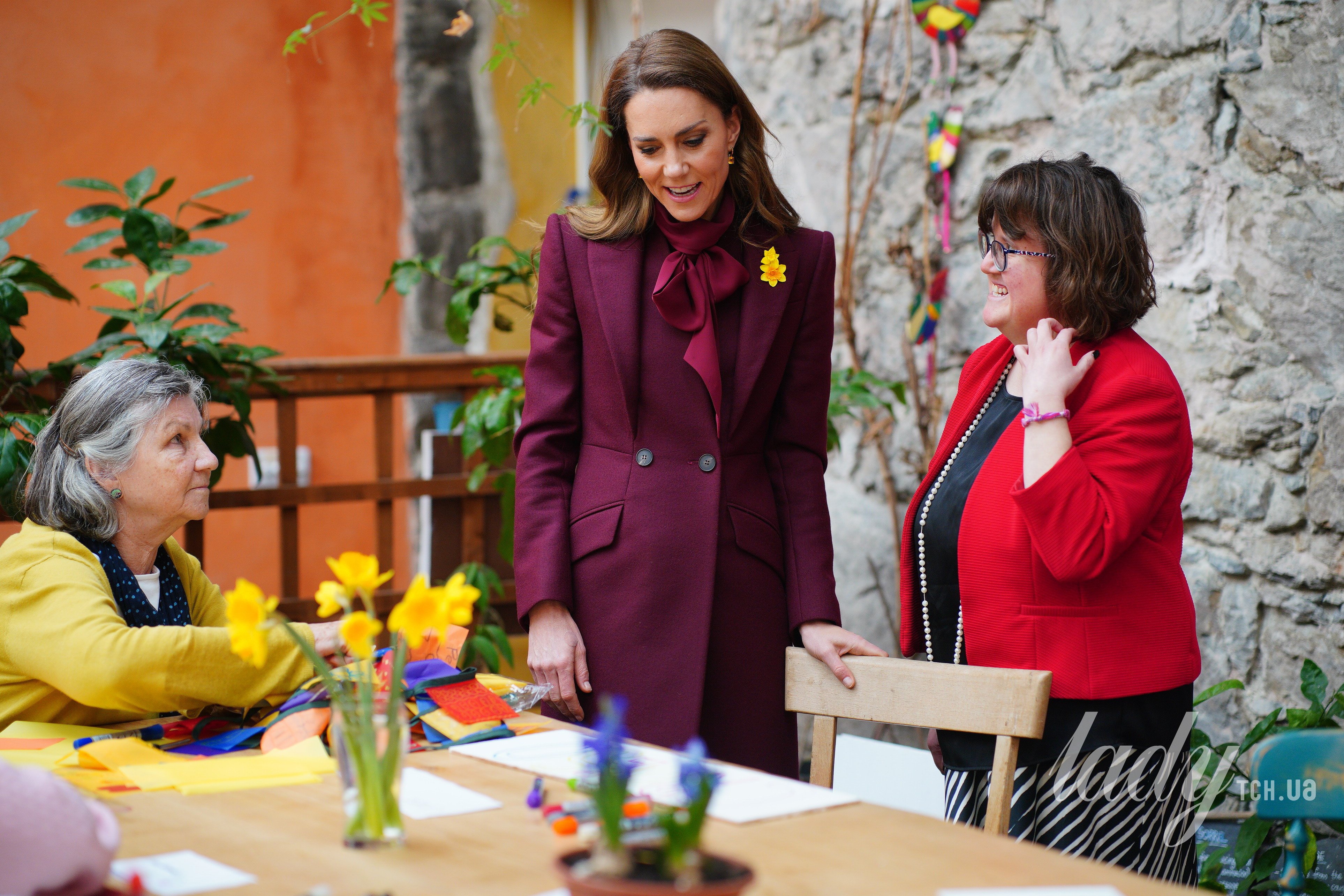 Принцесса Кейт появилась в Уэльсе в монохромном образе и с желтыми нарциссами на пальто