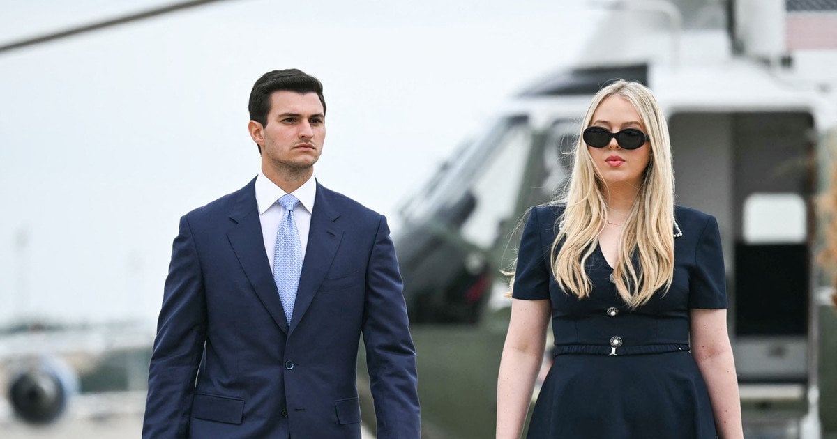 Тиффани Трамп и ее муж-миллиардер Майкл Булос были замечены на посадке в самолет Air Force One на объединенной базе Эндрюс, штат Мэриленд.
