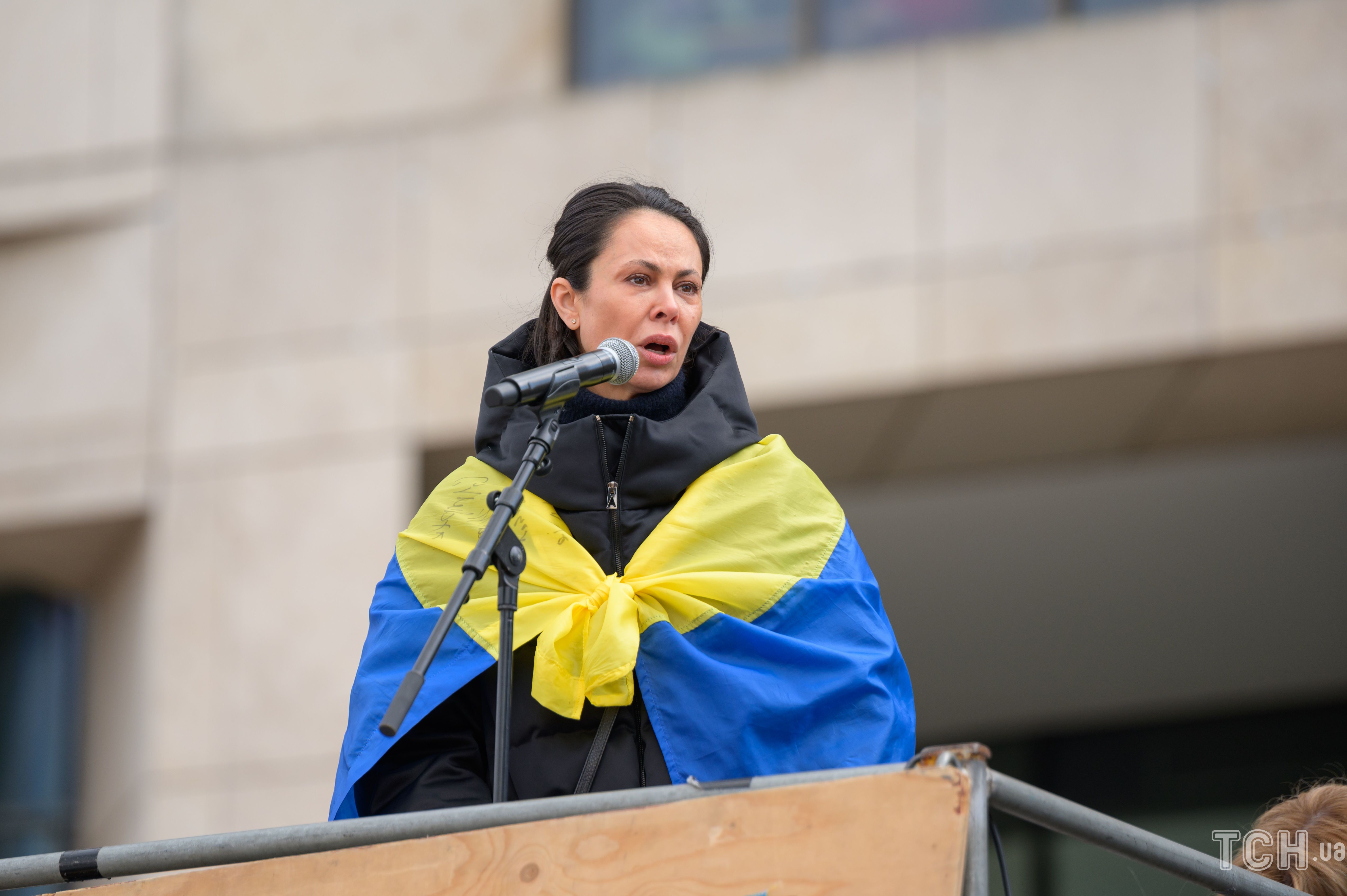 Ранее Наталья Кличко выступила на митинге в Германии. Она вышла на сцену с флагом Украины на плечах и спела гимн нашей страны.