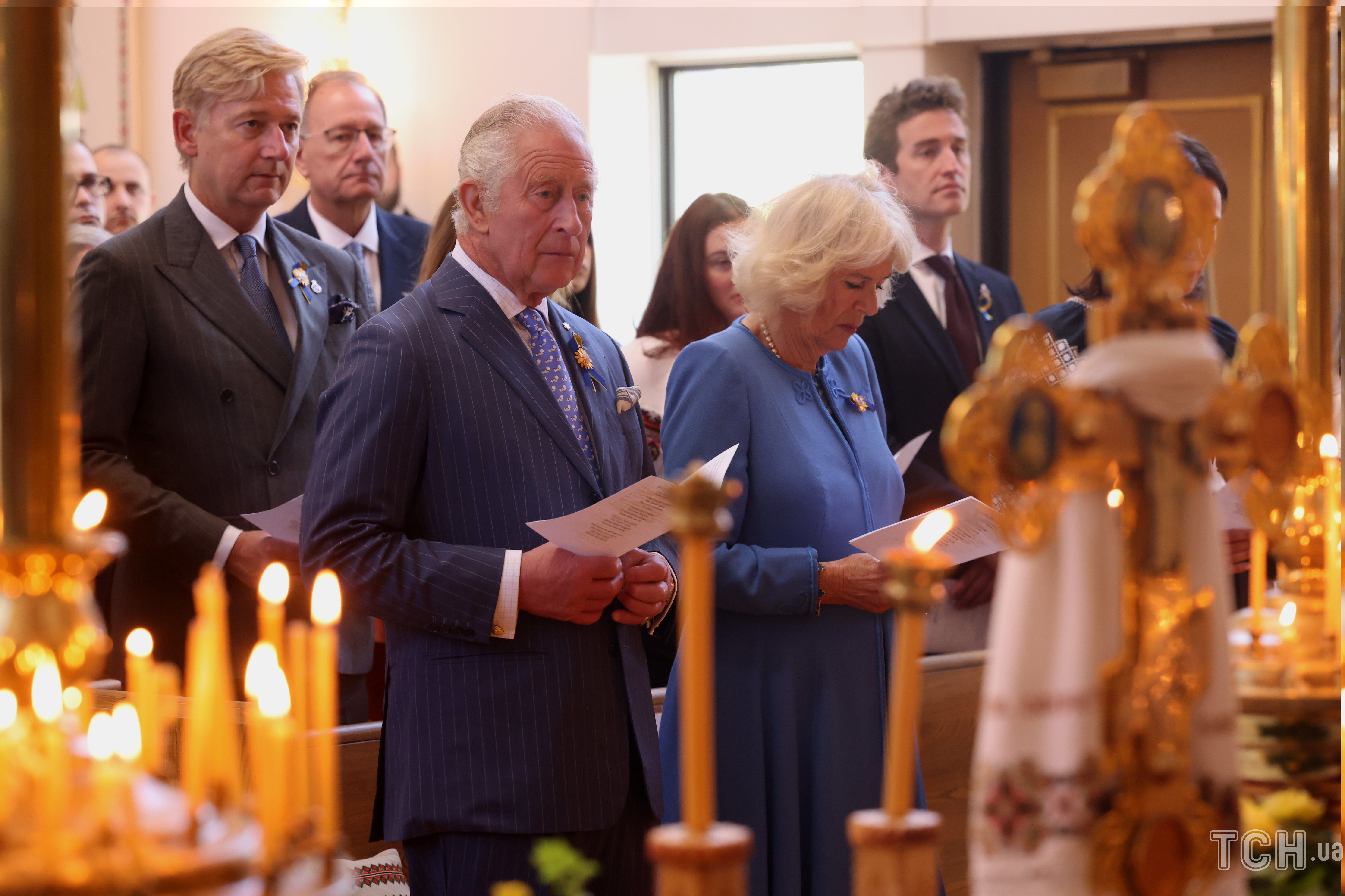 А еще Камилла и Чарльз посетили службу в Украинском православном соборе Успения Пресвятой Богородицы в Оттаве, Канада. Герцогиня Камилла, который была в этот день в синем пальто, пришпилила на грудь ленточку в цветах украинского флага с маленьким подсолнухом, такой же аксессуар в знак поддержки нашей страны был и на груди у принца Чарльза.